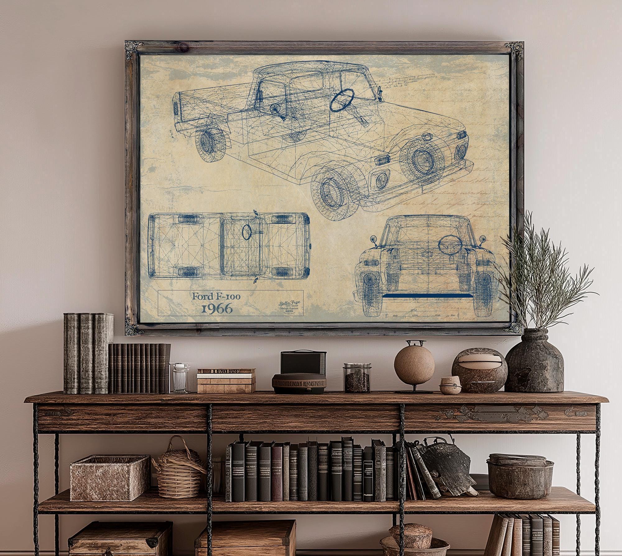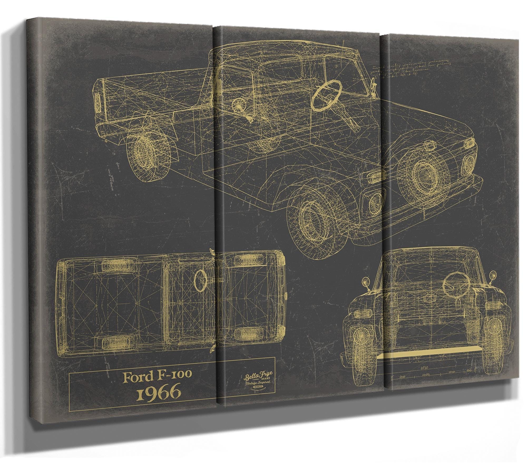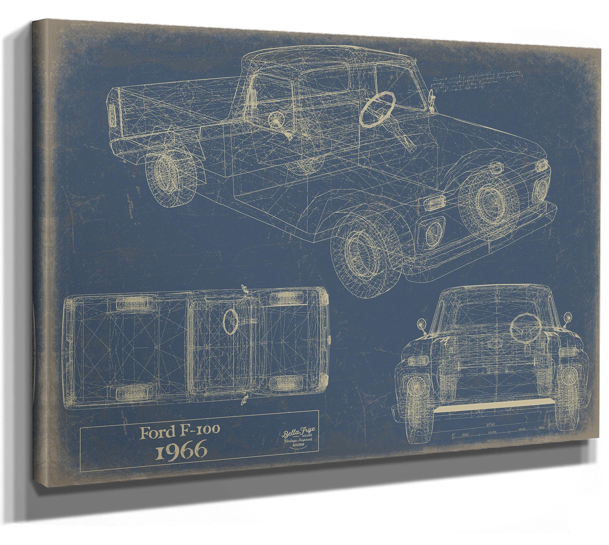 • Bella Frye Vintage 1966 Ford F-100 Car Model Print,  Original Blueprint Canvas