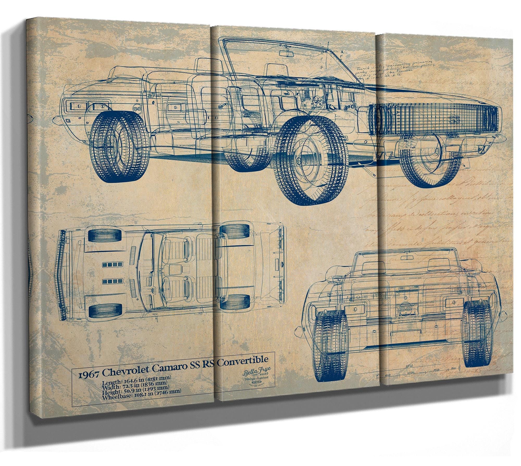 • Bella Frye Vintage 1967 Camaro SS Convertible Art - Gifts for Guys - Original Vehicle Print