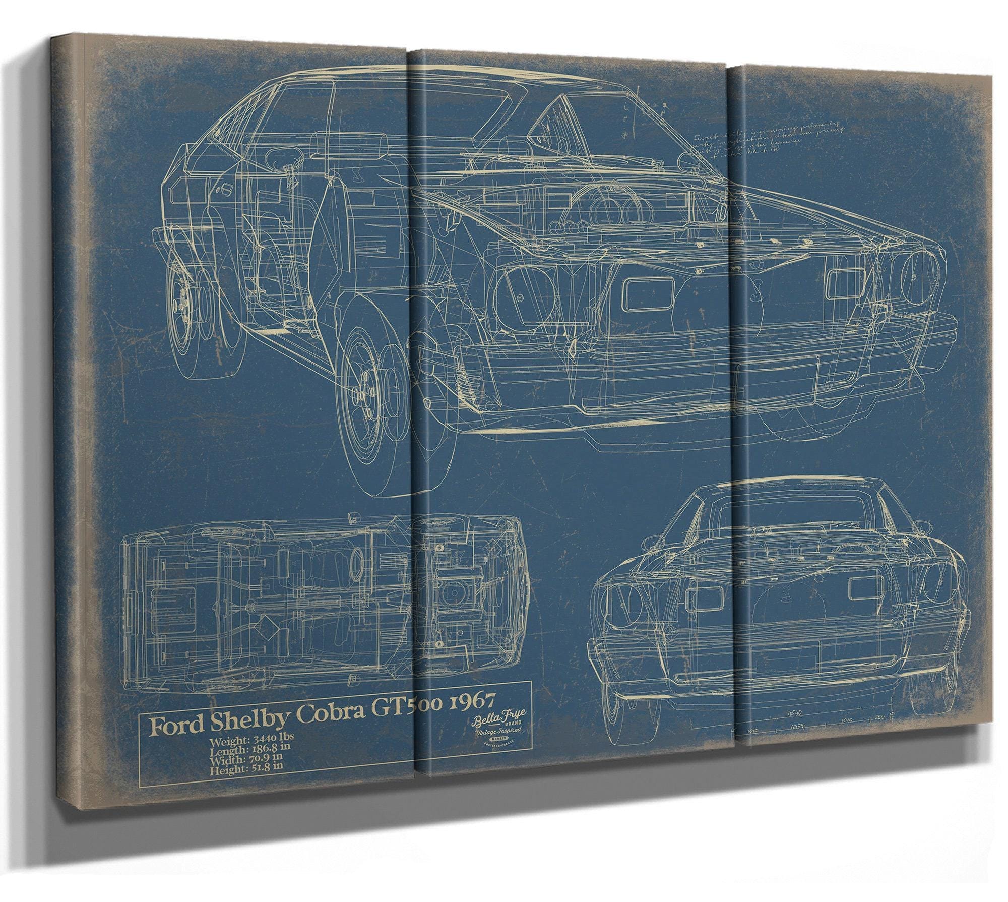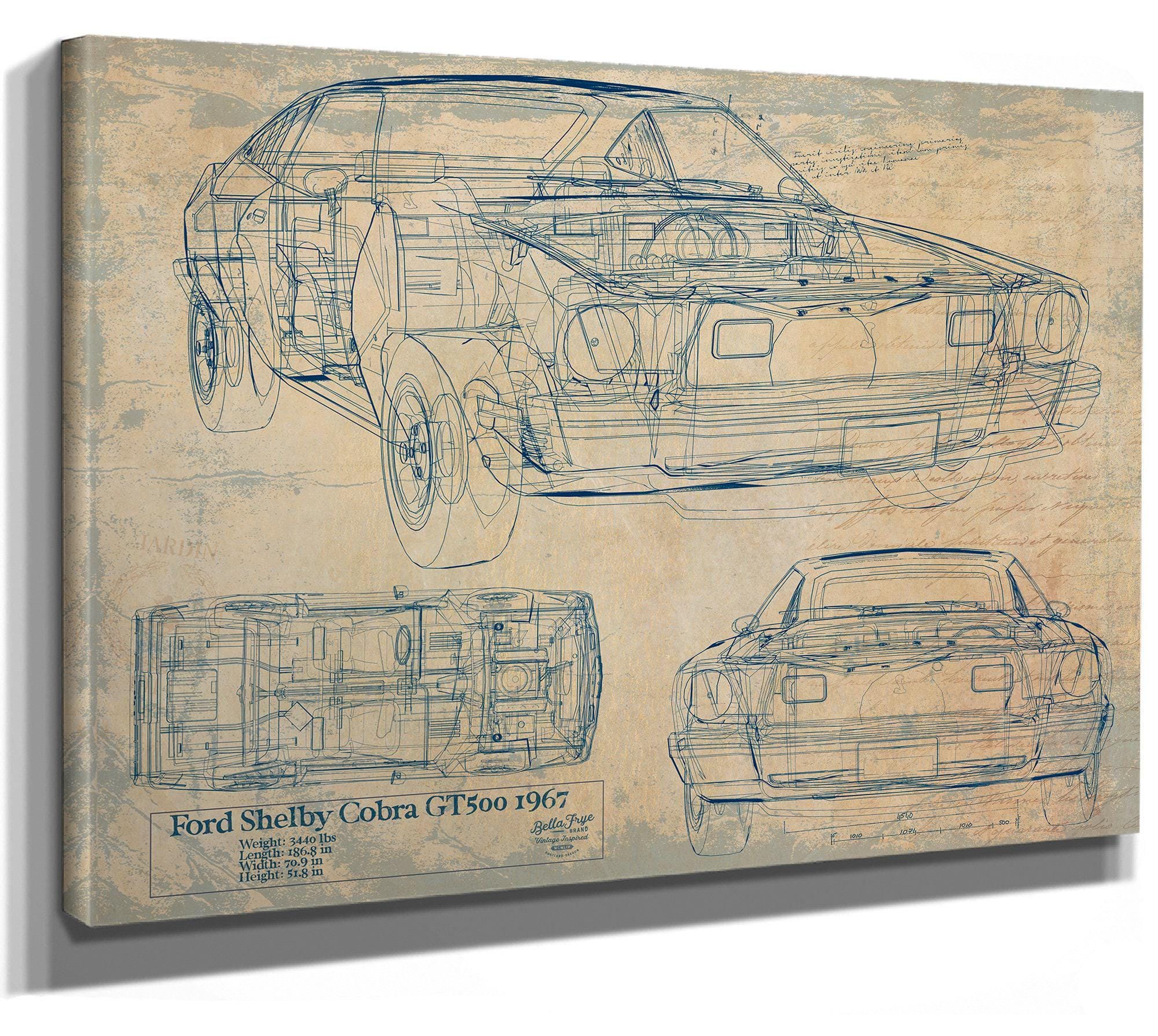 • Bella Frye Vintage 1967 Ford Shelby Cobra GT500 Car Model Print,  Original Blueprint Canvas