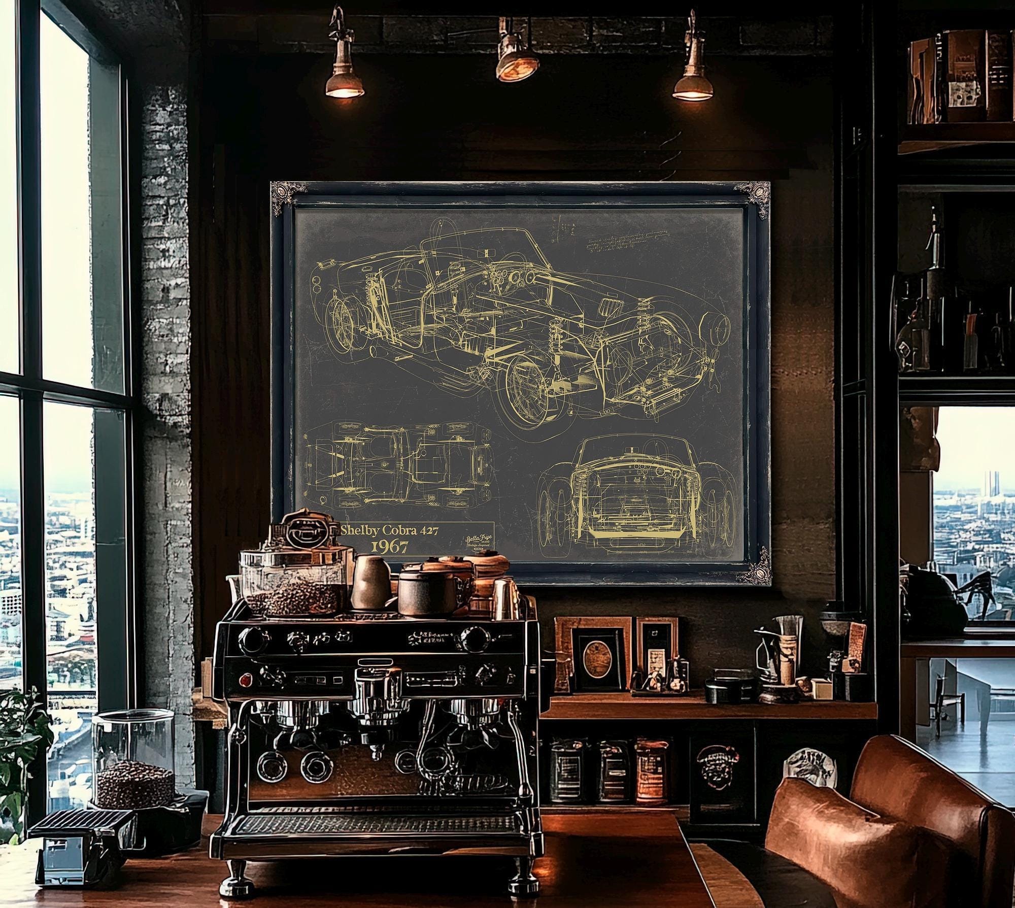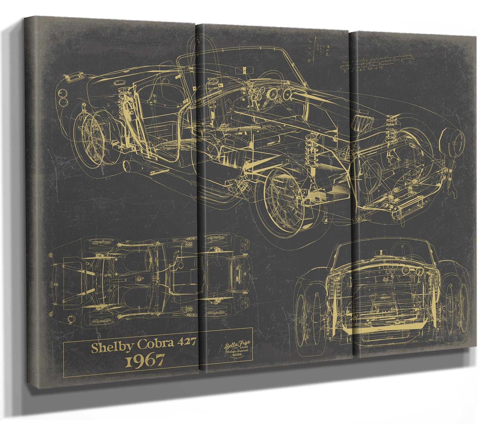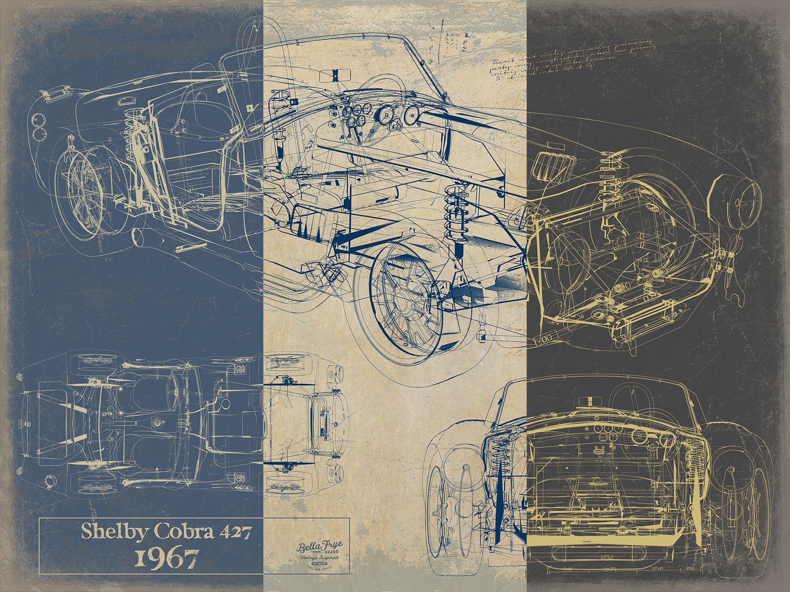 • Bella Frye Vintage 1967 Shelby Cobra 427 Car Model Print,  Original Blueprint Canvas
