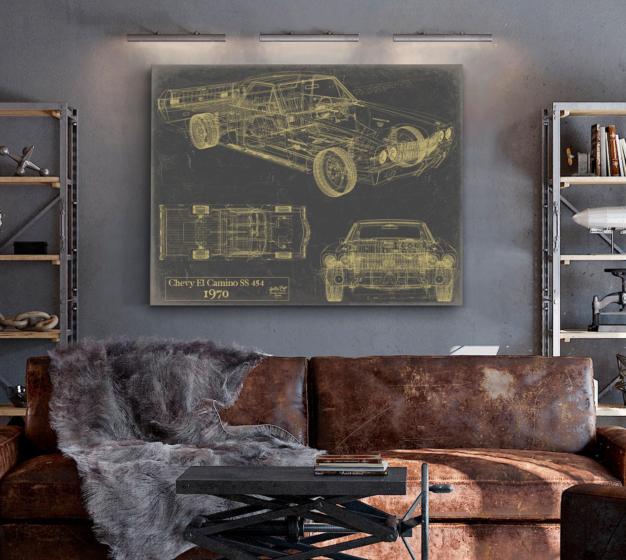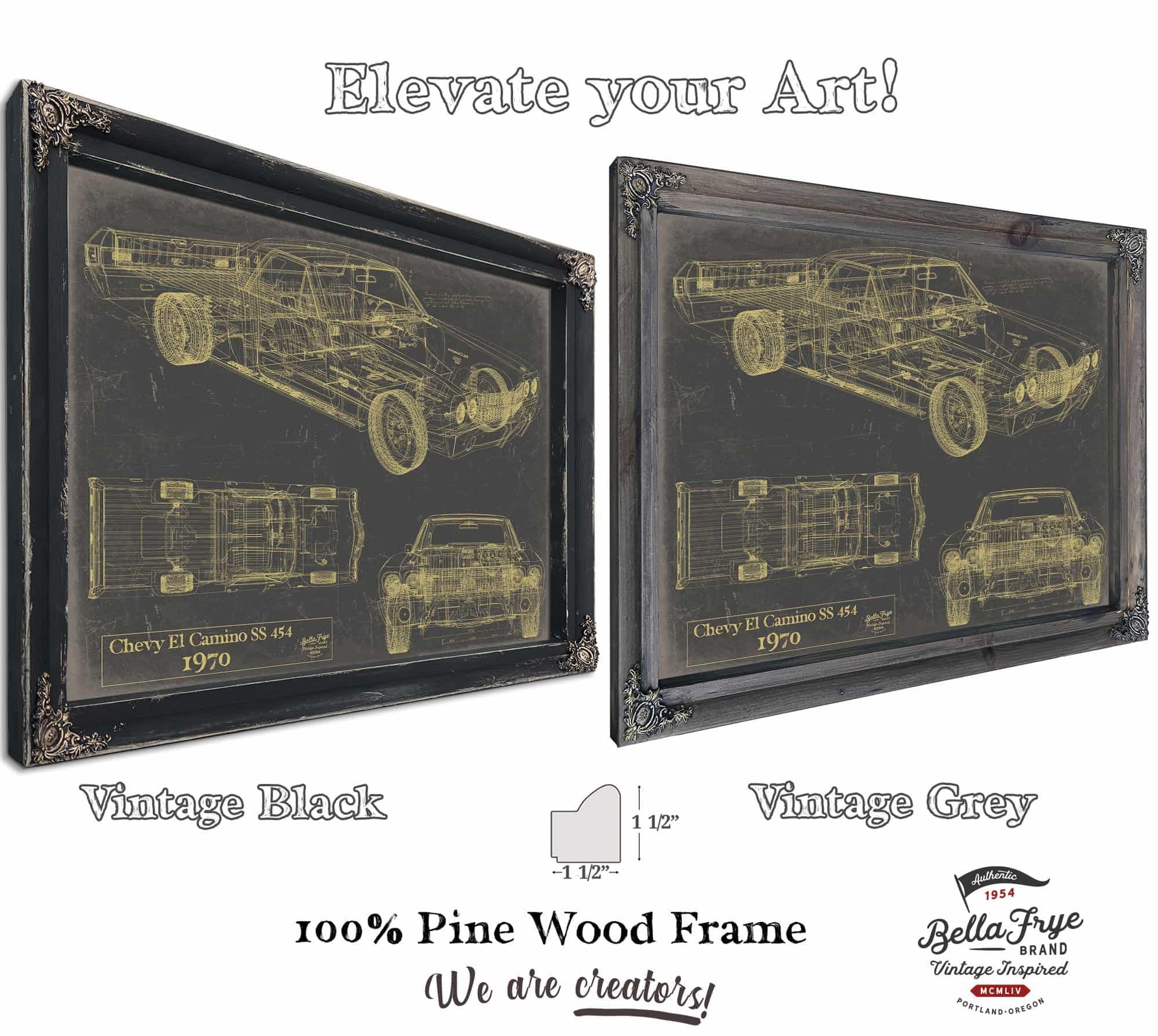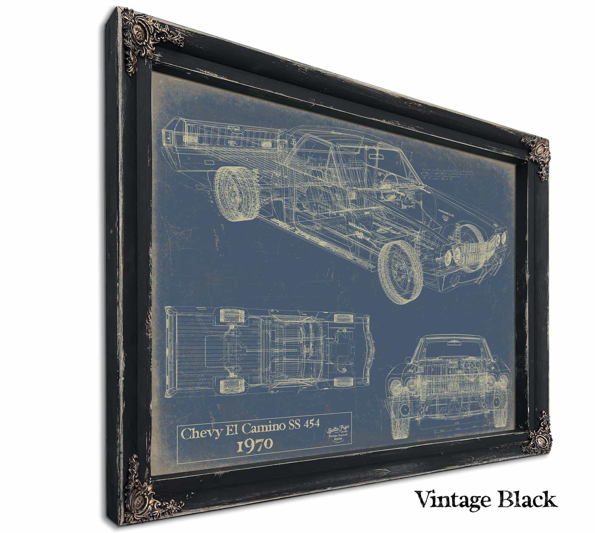 • Bella Frye Vintage 1970 Chevrolet El Camino SS 454 Car Model Print,  Original Blueprint Canvas