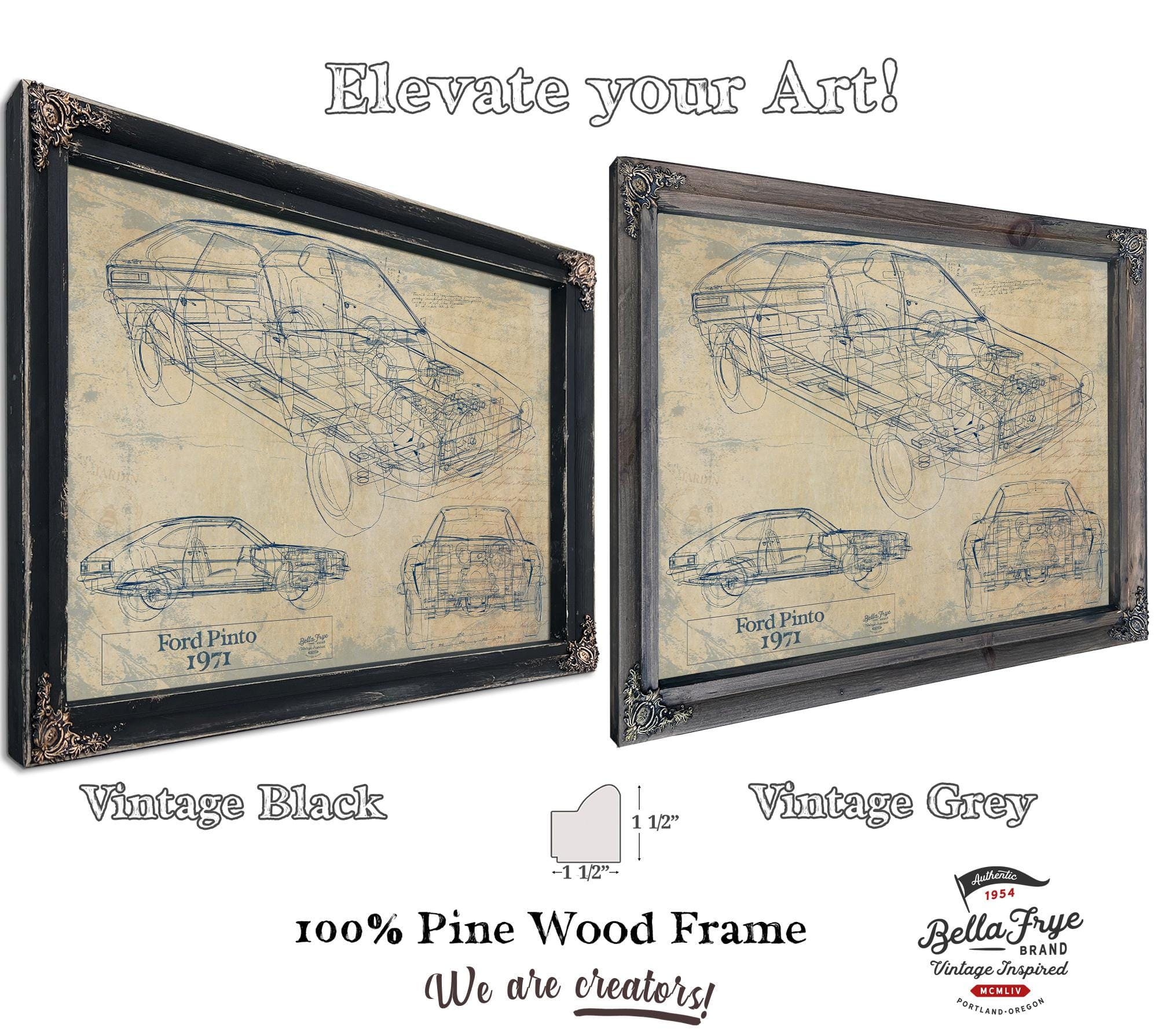 • Bella Frye Vintage 1971 Ford Pinto Model Print,  Original Blueprint Canvas, Framed, or Unframed Art