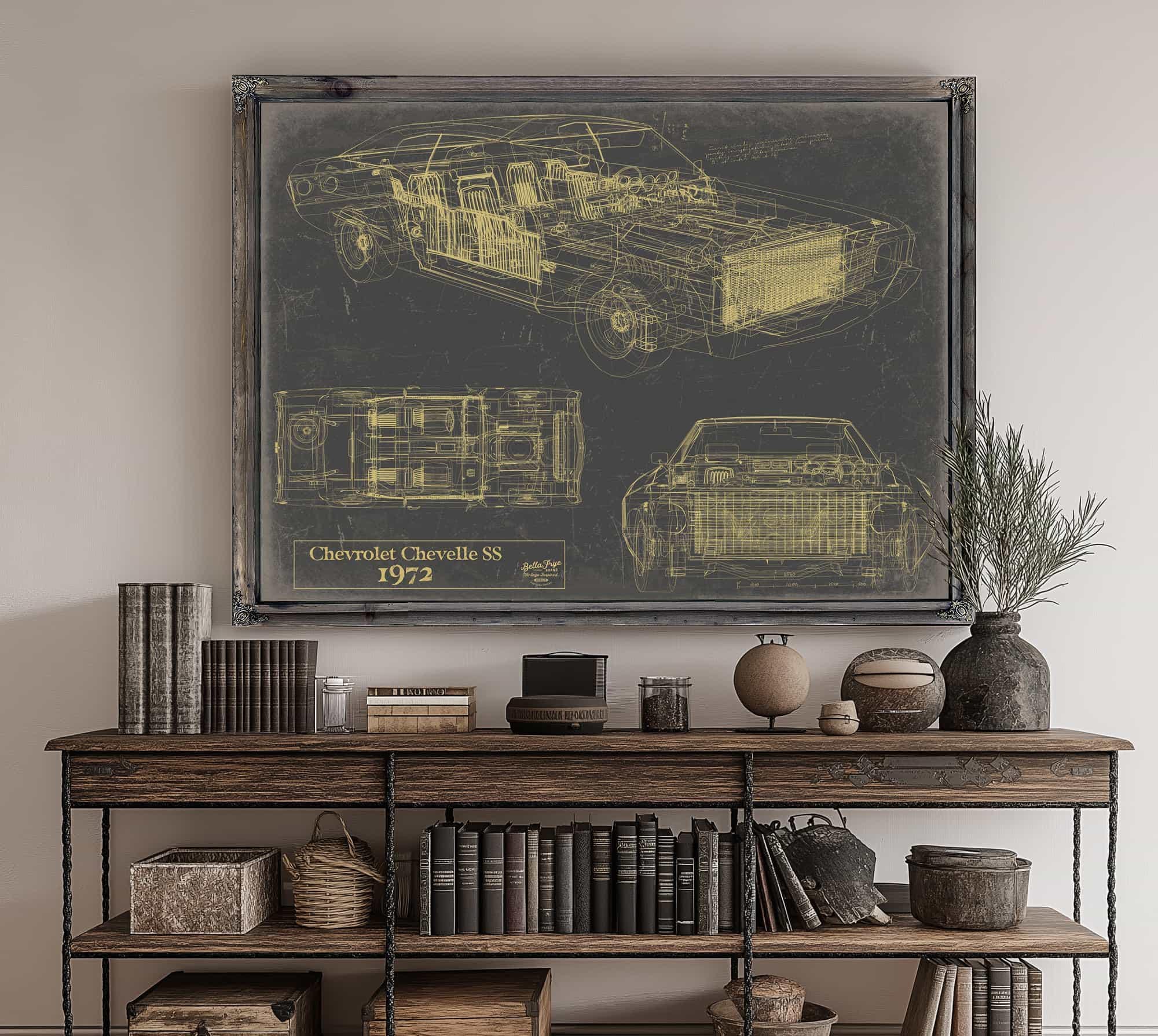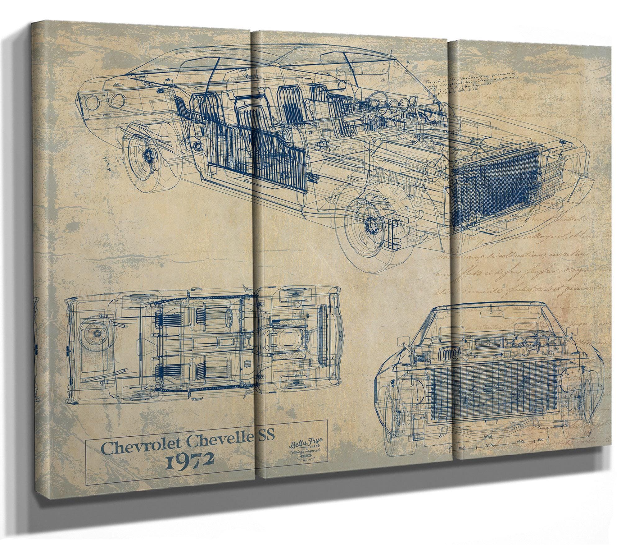 • Bella Frye Vintage 1972 Chevelle Car Model Print,  Original Blueprint Canvas