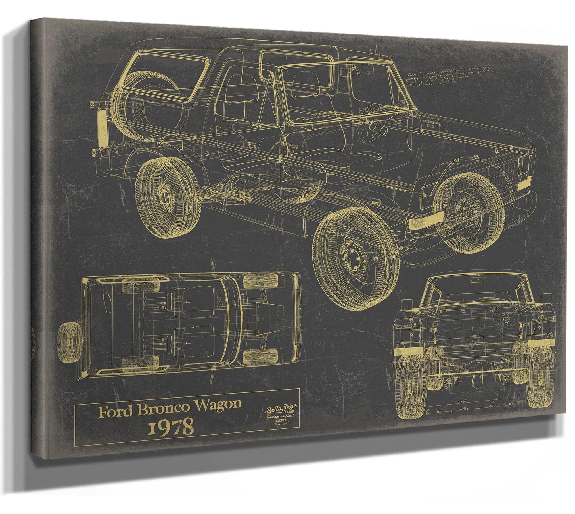 • Bella Frye Vintage 1978 Ford Bronco Wagon Car Model Mancave Blueprint Art