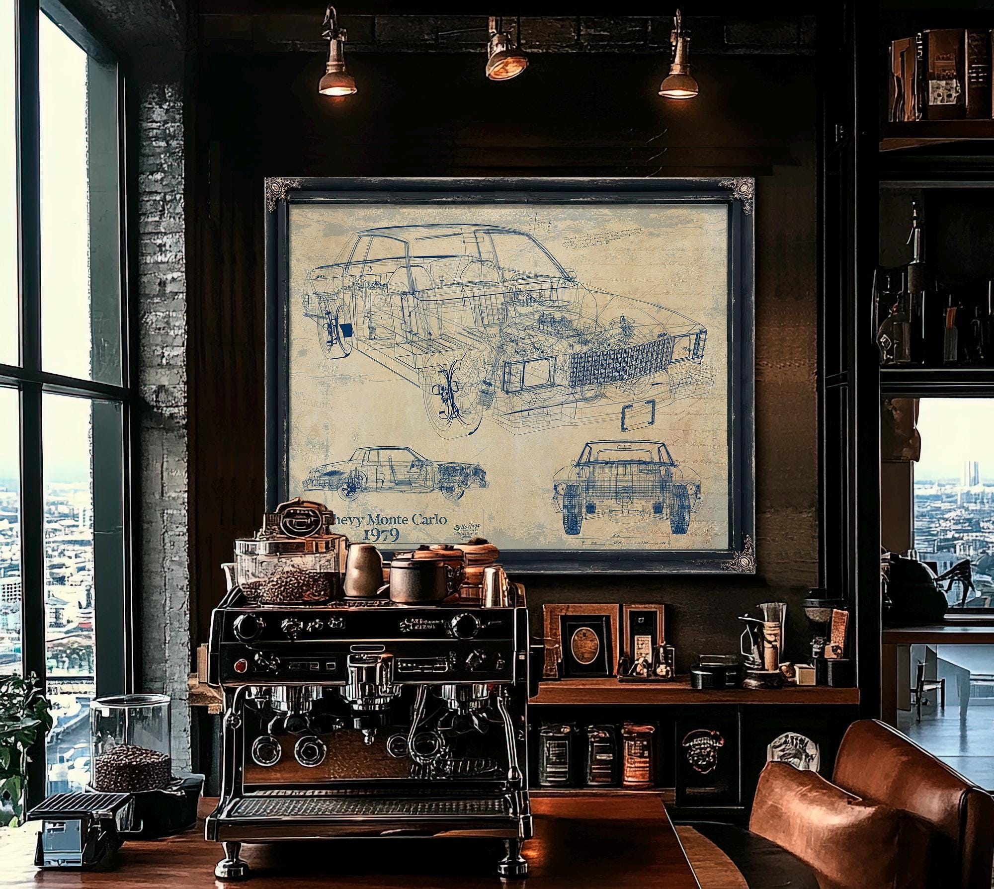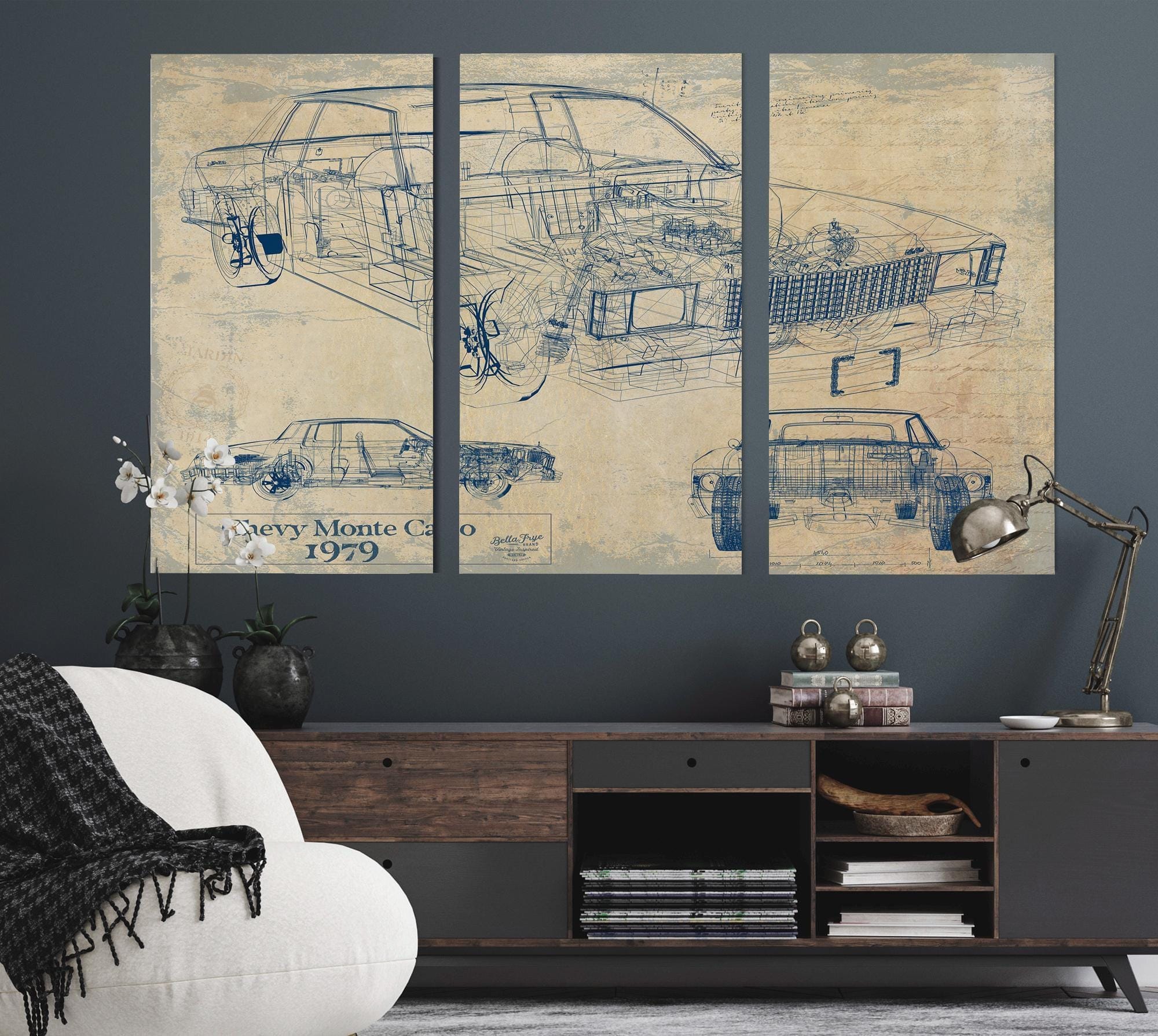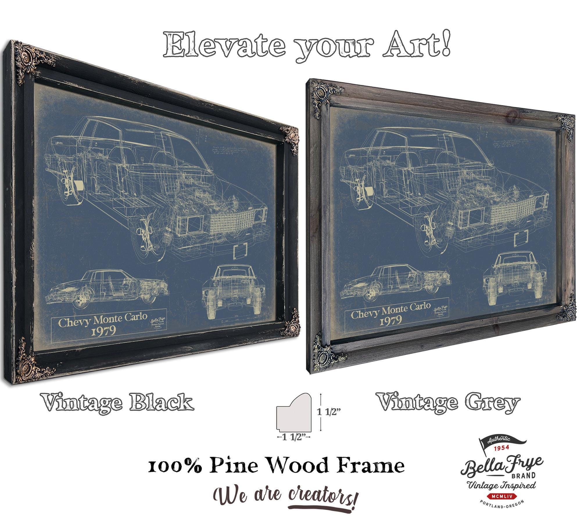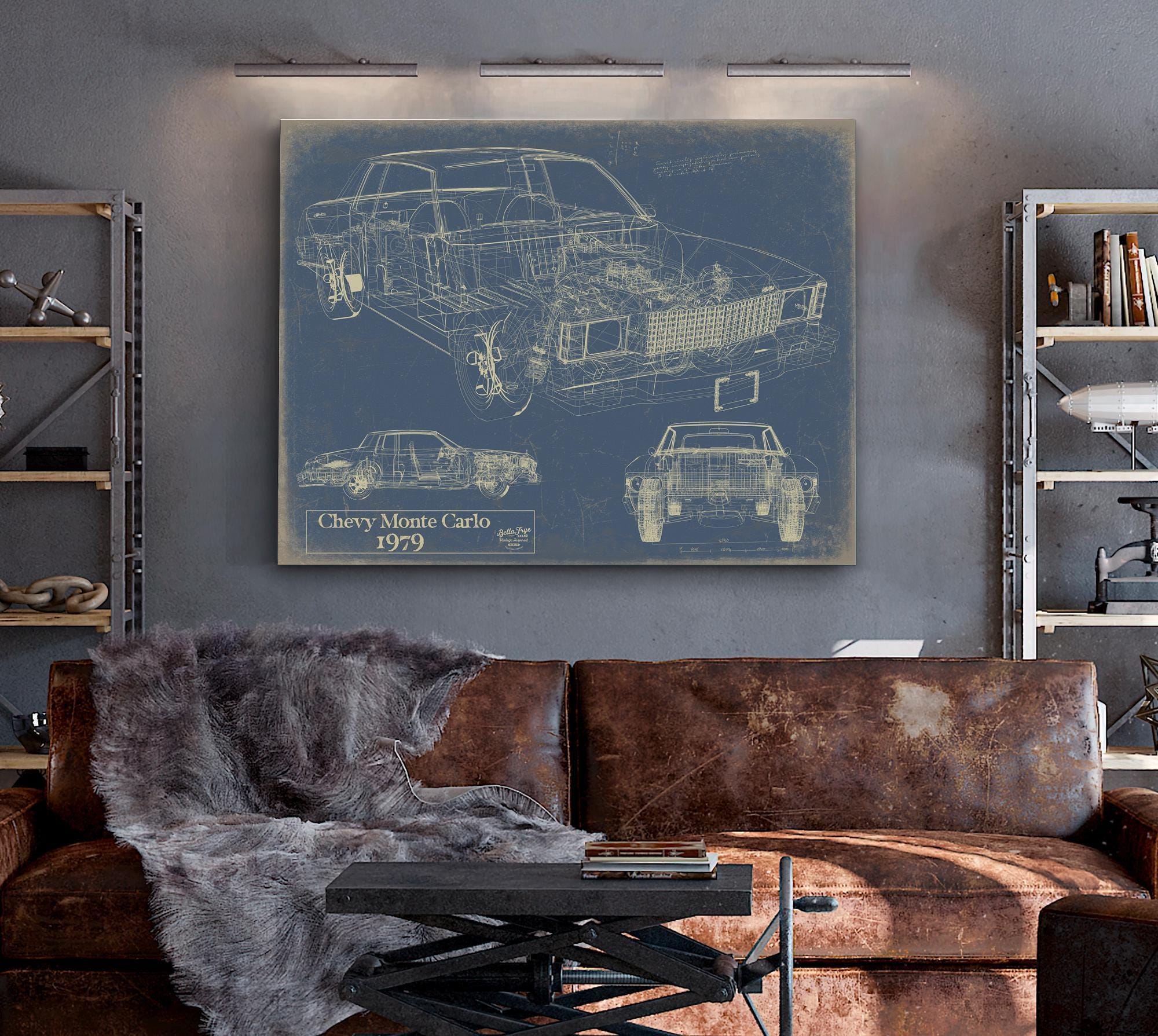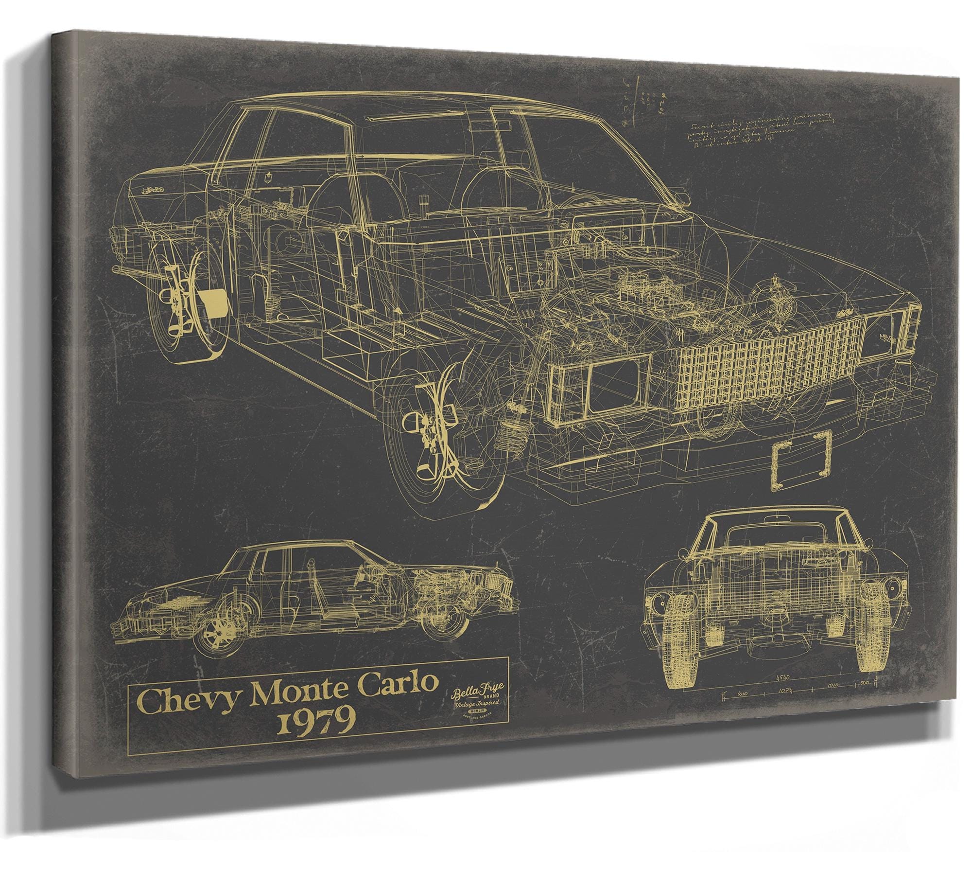 • Bella Frye Vintage 1979 Chevy Monte Carlo Model Mancave Blueprint Art