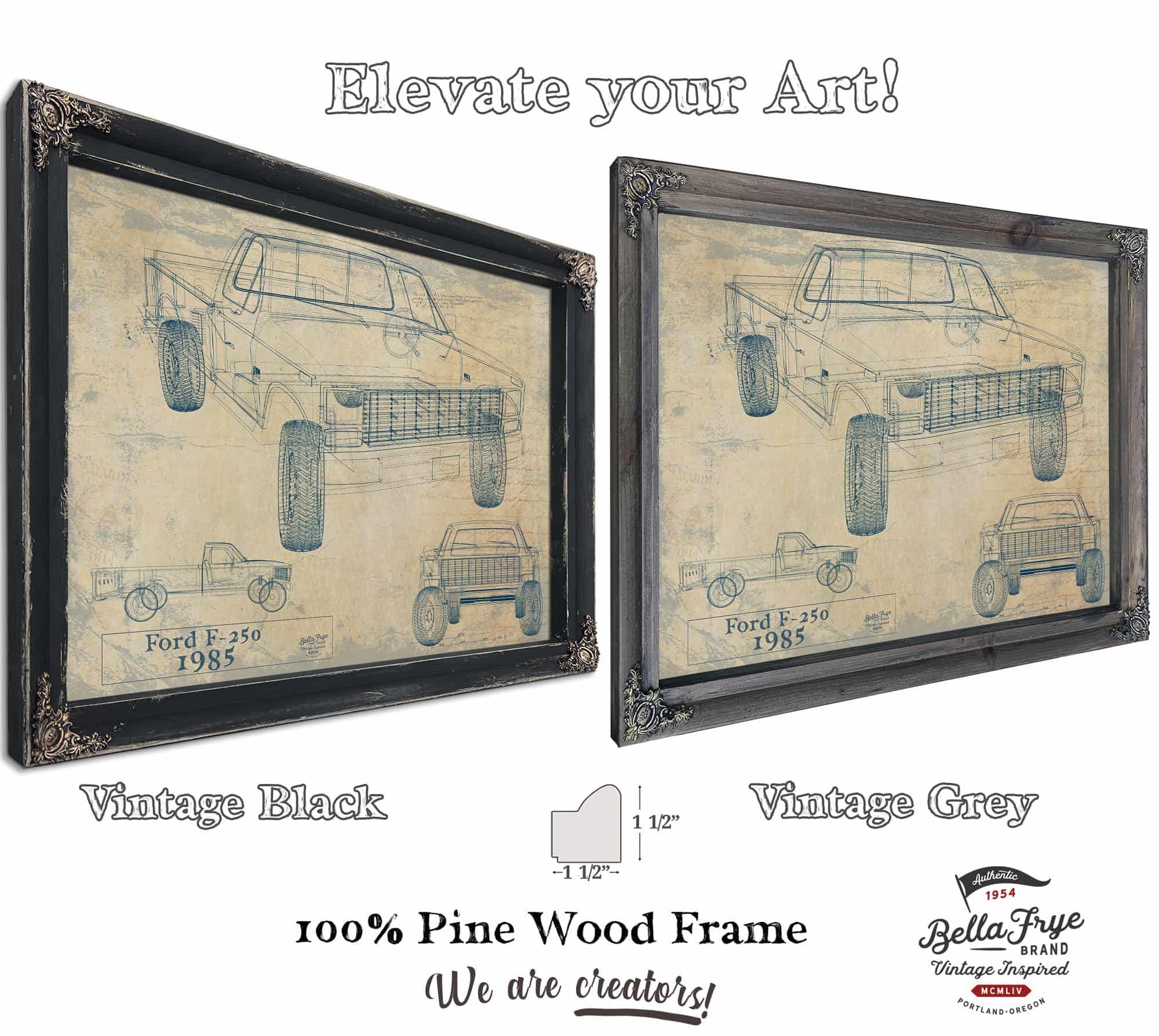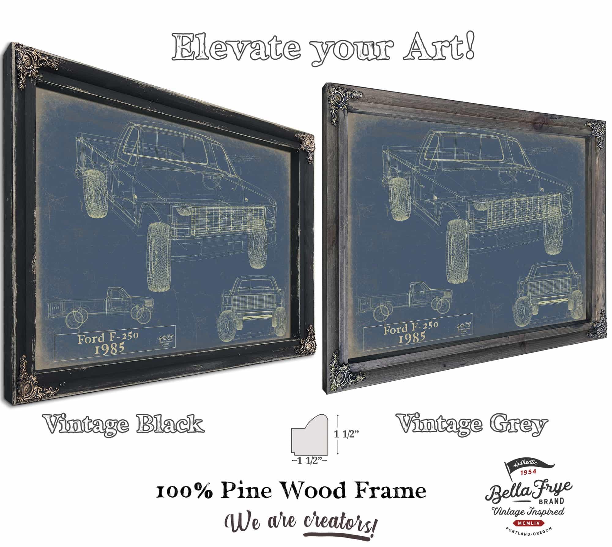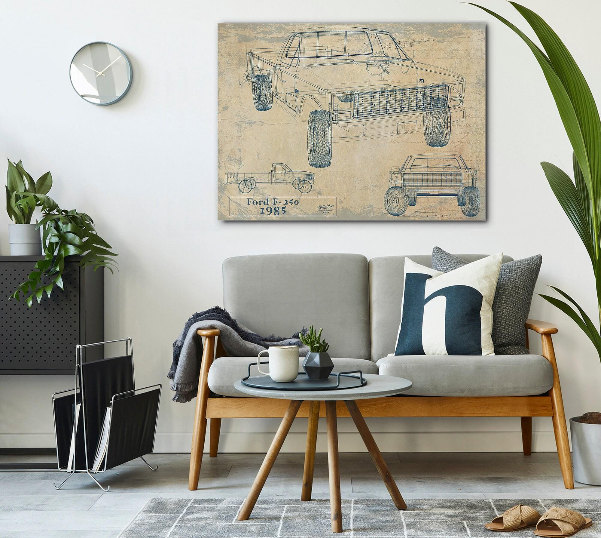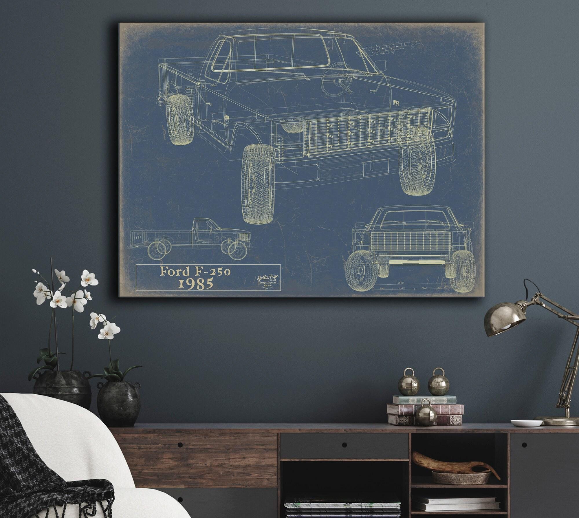 • Bella Frye Vintage 1985 Ford F-250 Car Model Print,  Original Blueprint Canvas, Framed, or Unframed Art