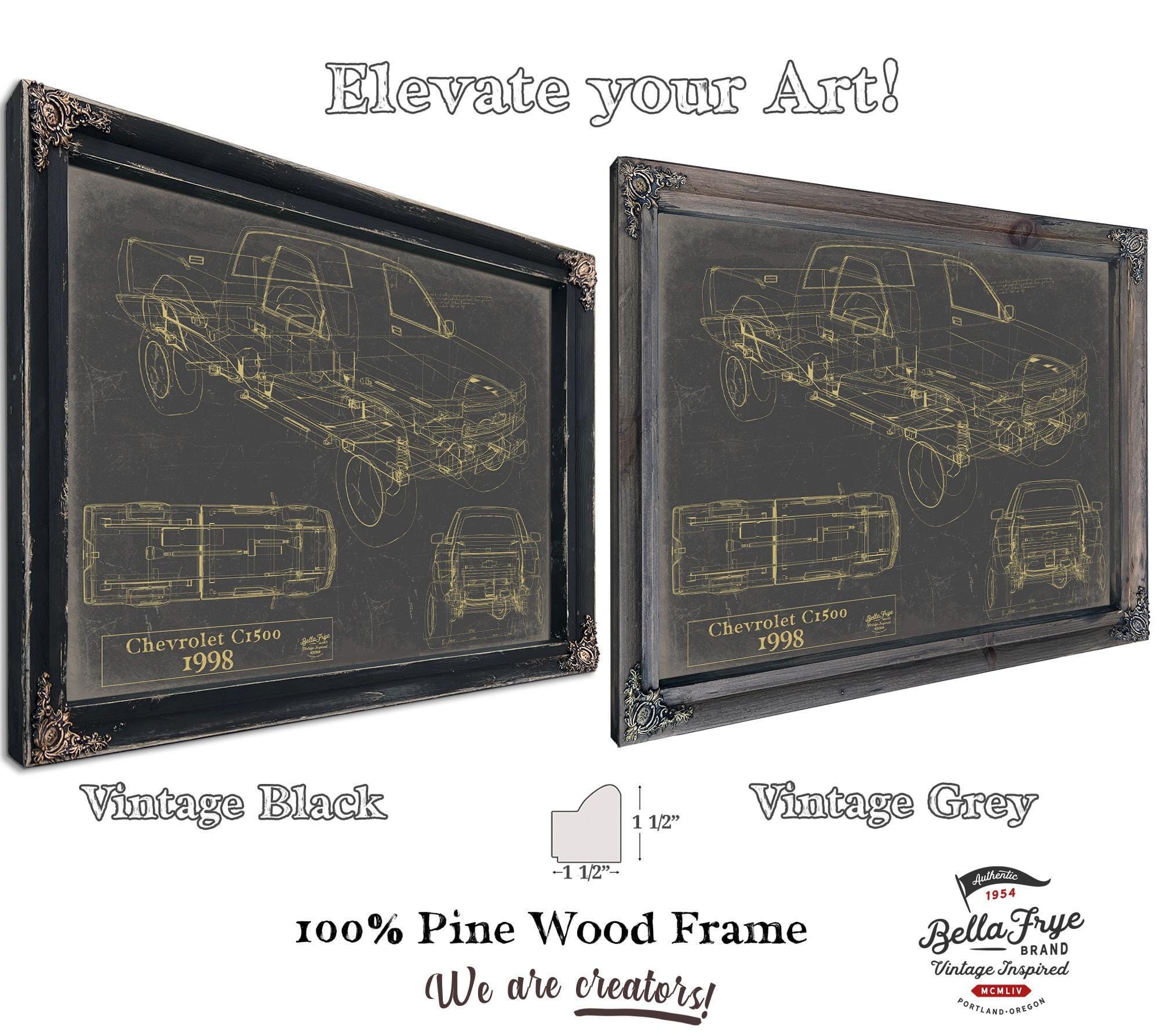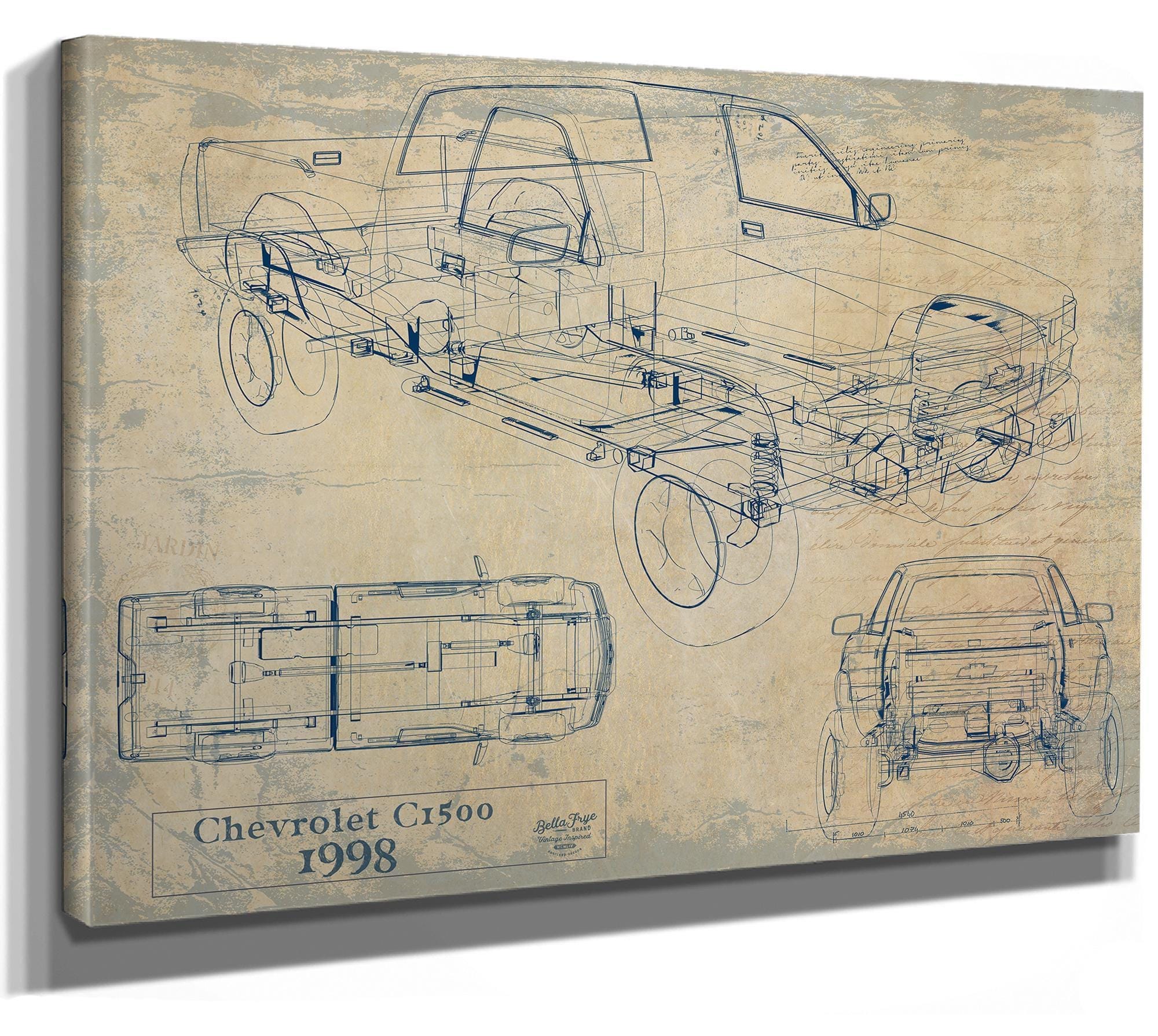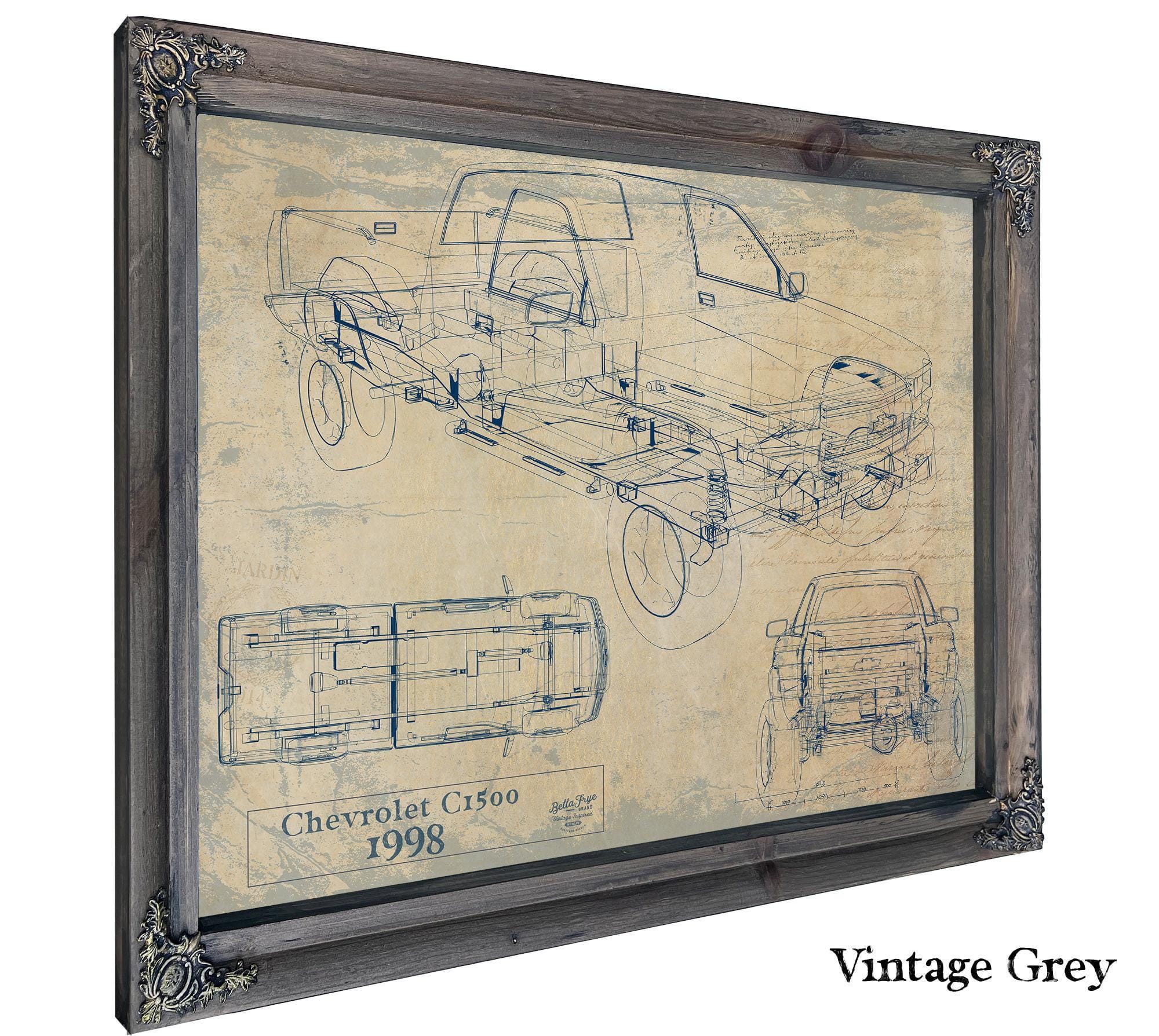 • Bella Frye Vintage 1998 Chevrolet C1500 Model Mancave Blueprint Art