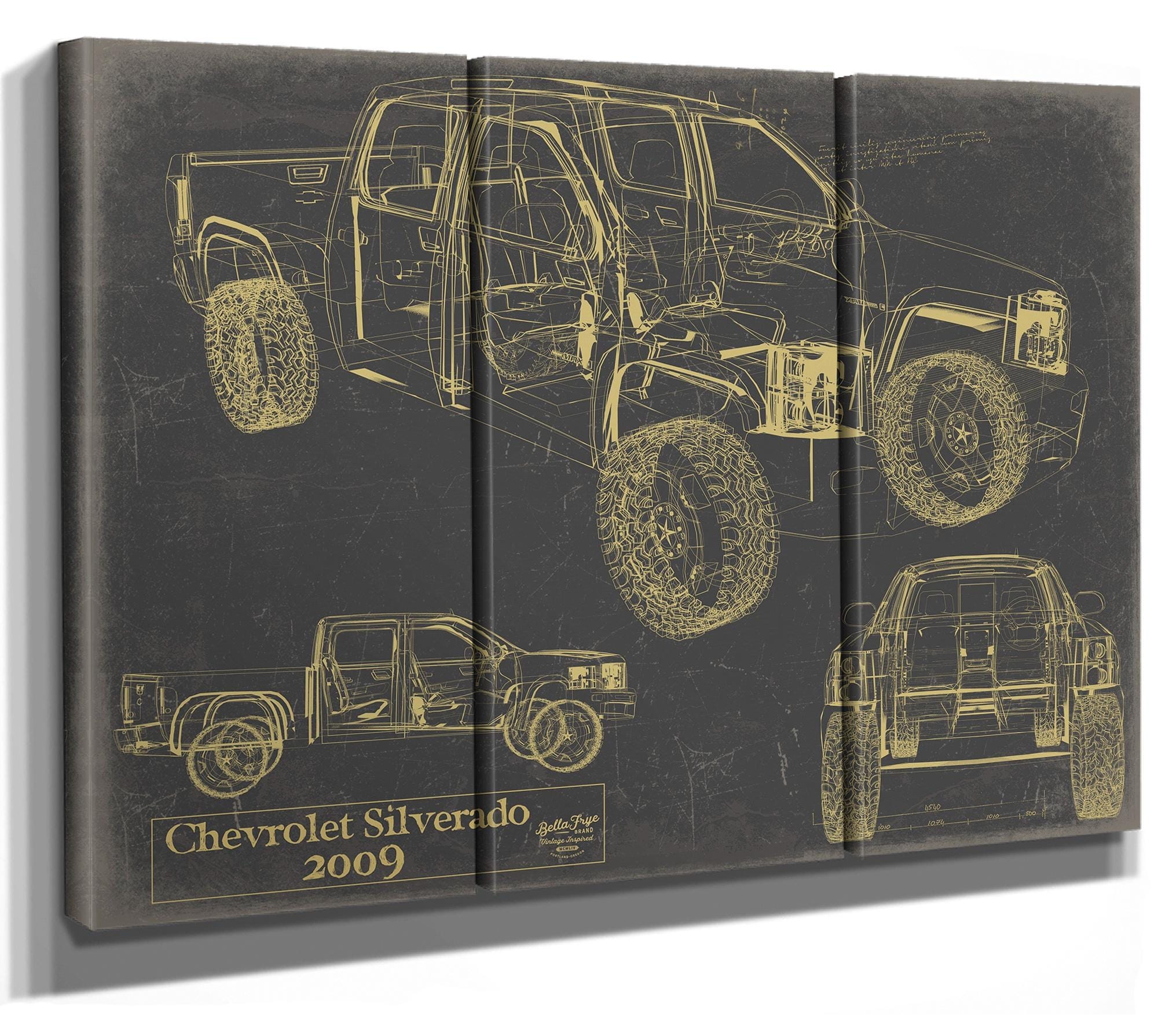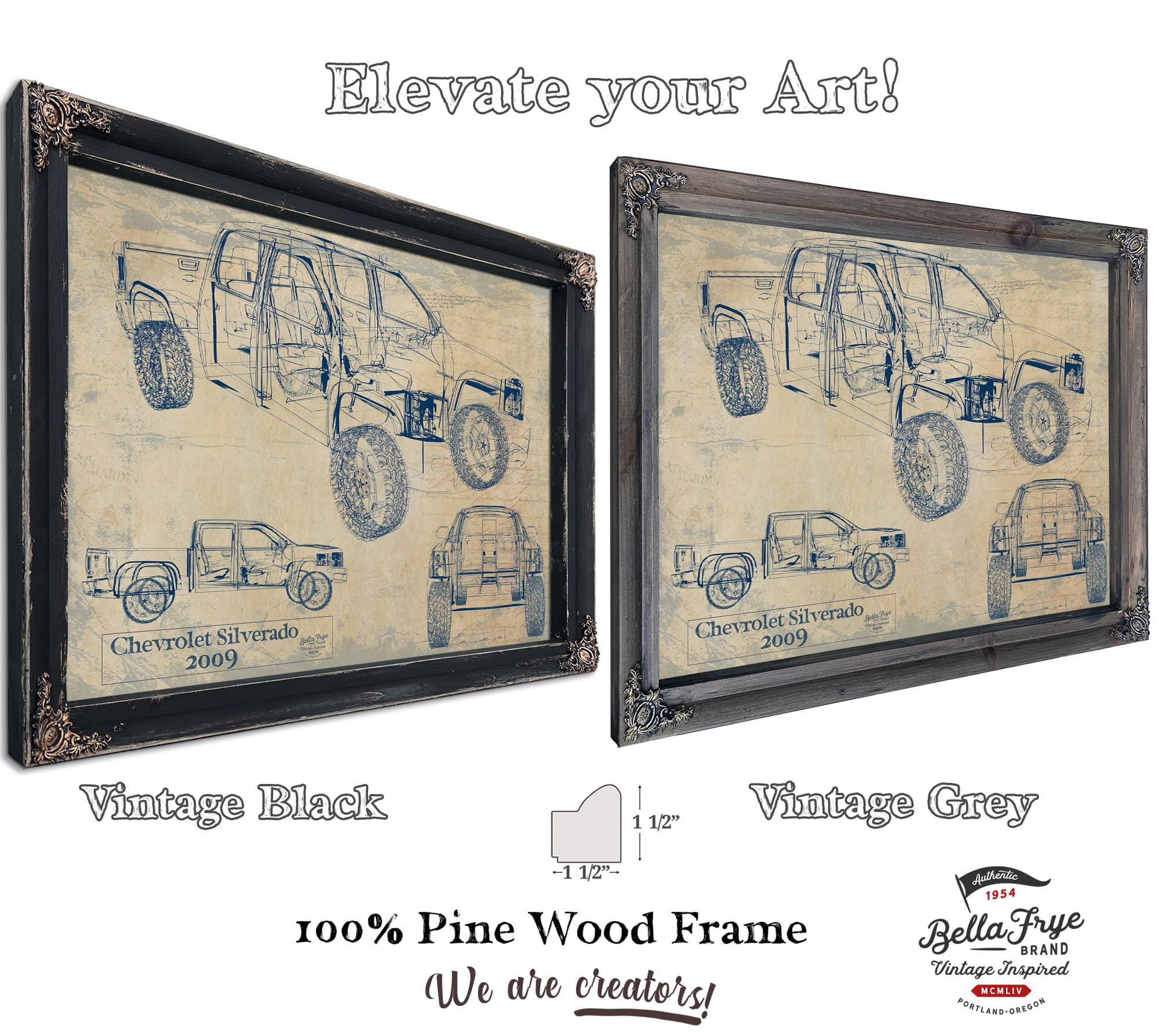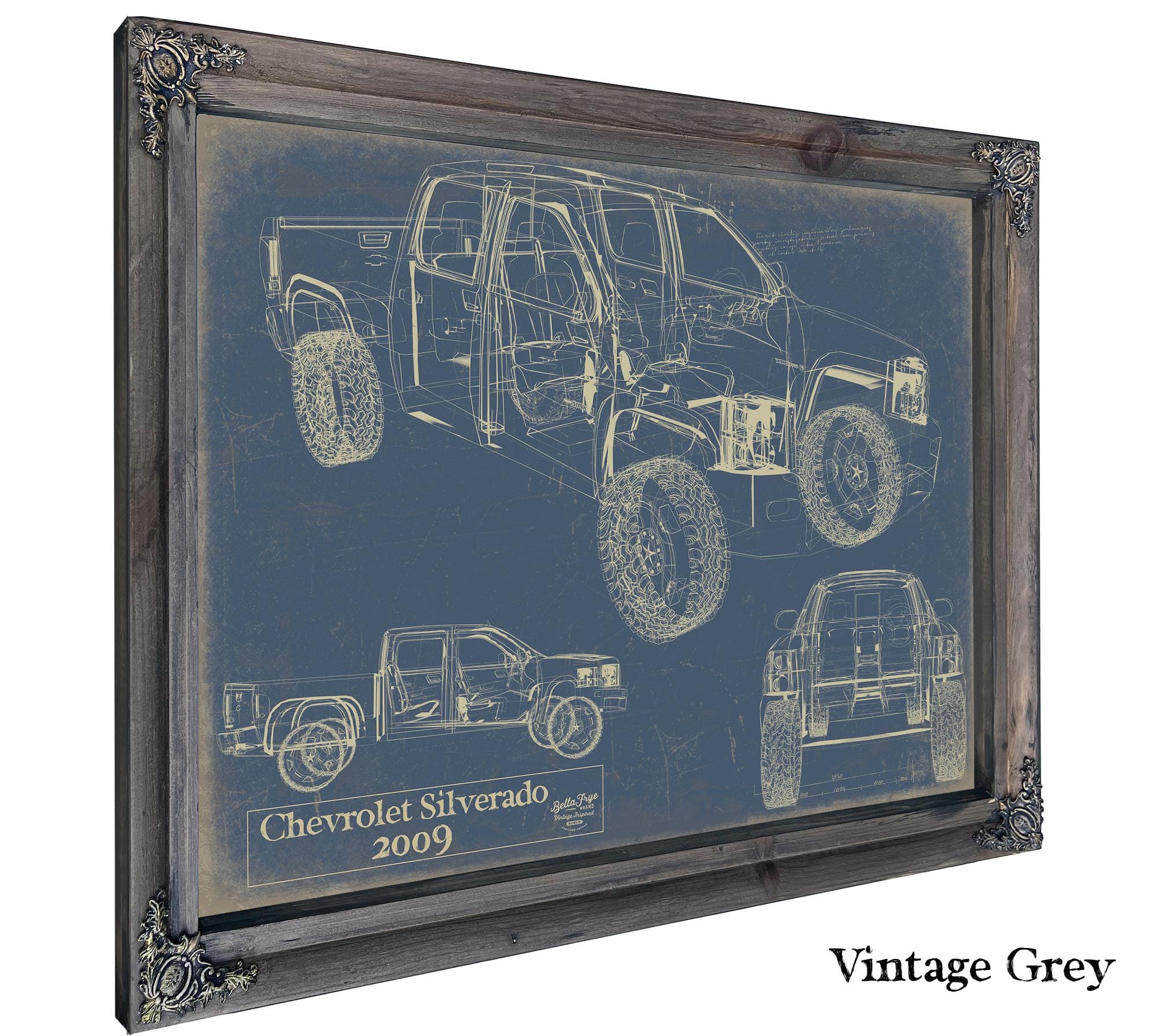 • Bella Frye Vintage 2009 Chevrolet Silverado Truck Model Mancave Blueprint Art