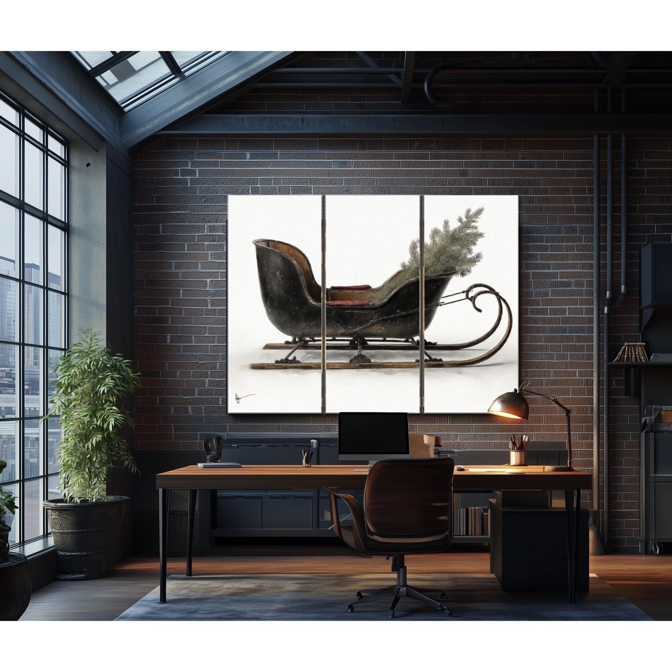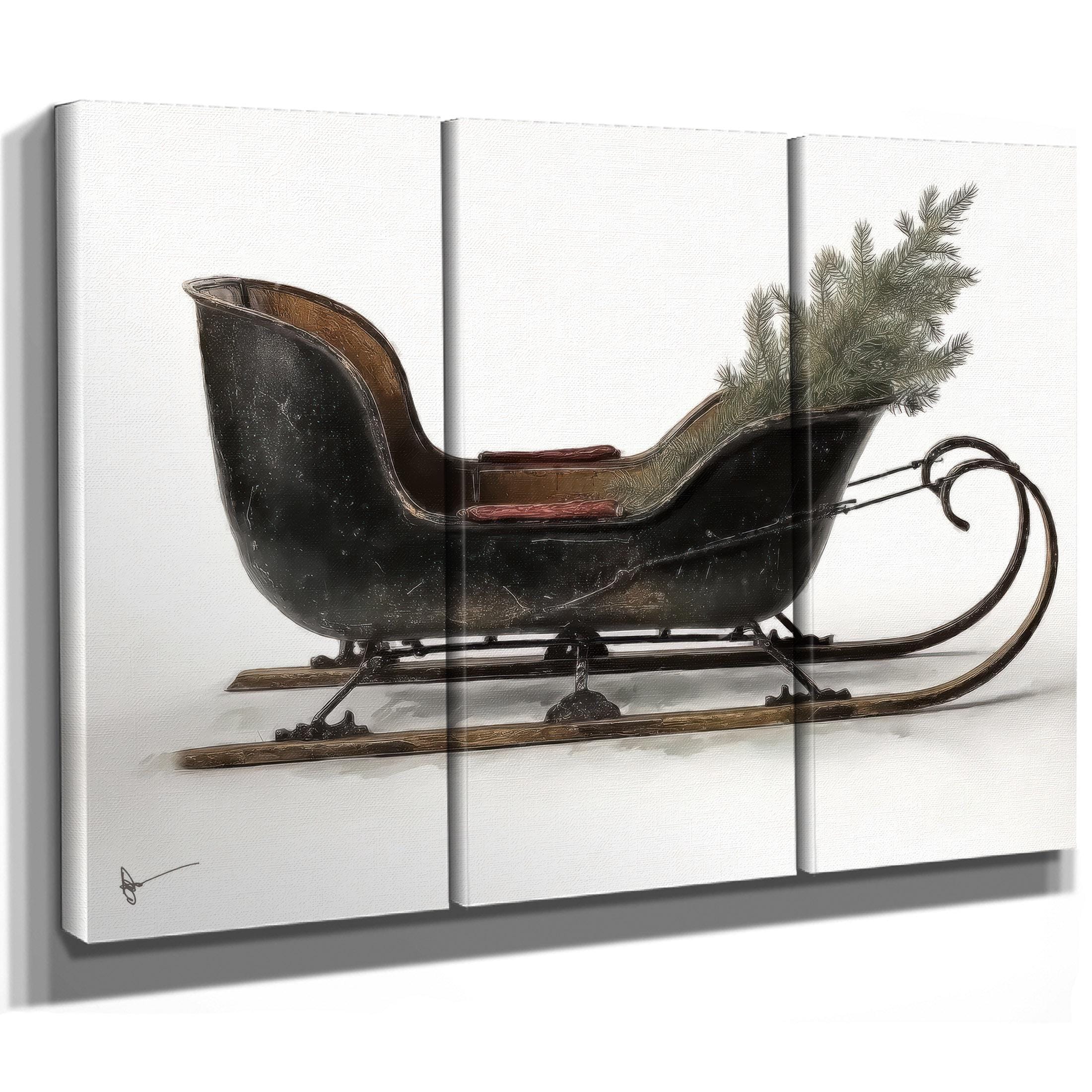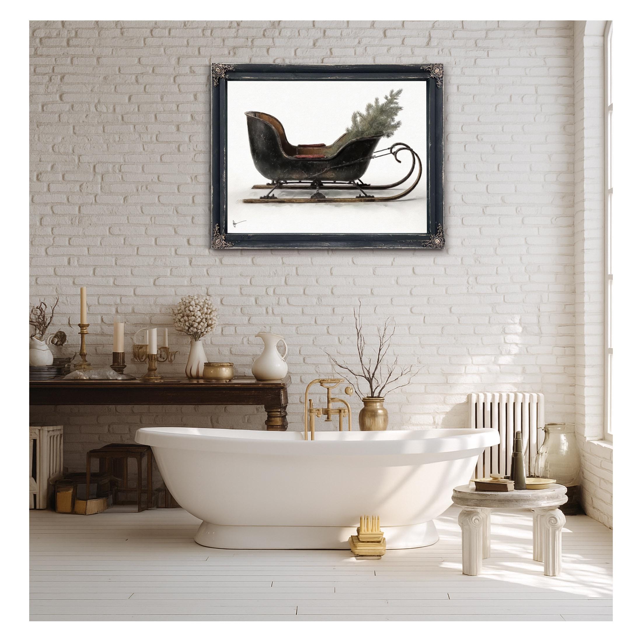 • Bella Frye Vintage Black Sleigh Christmas Art – Rustic Farmhouse Winter Print