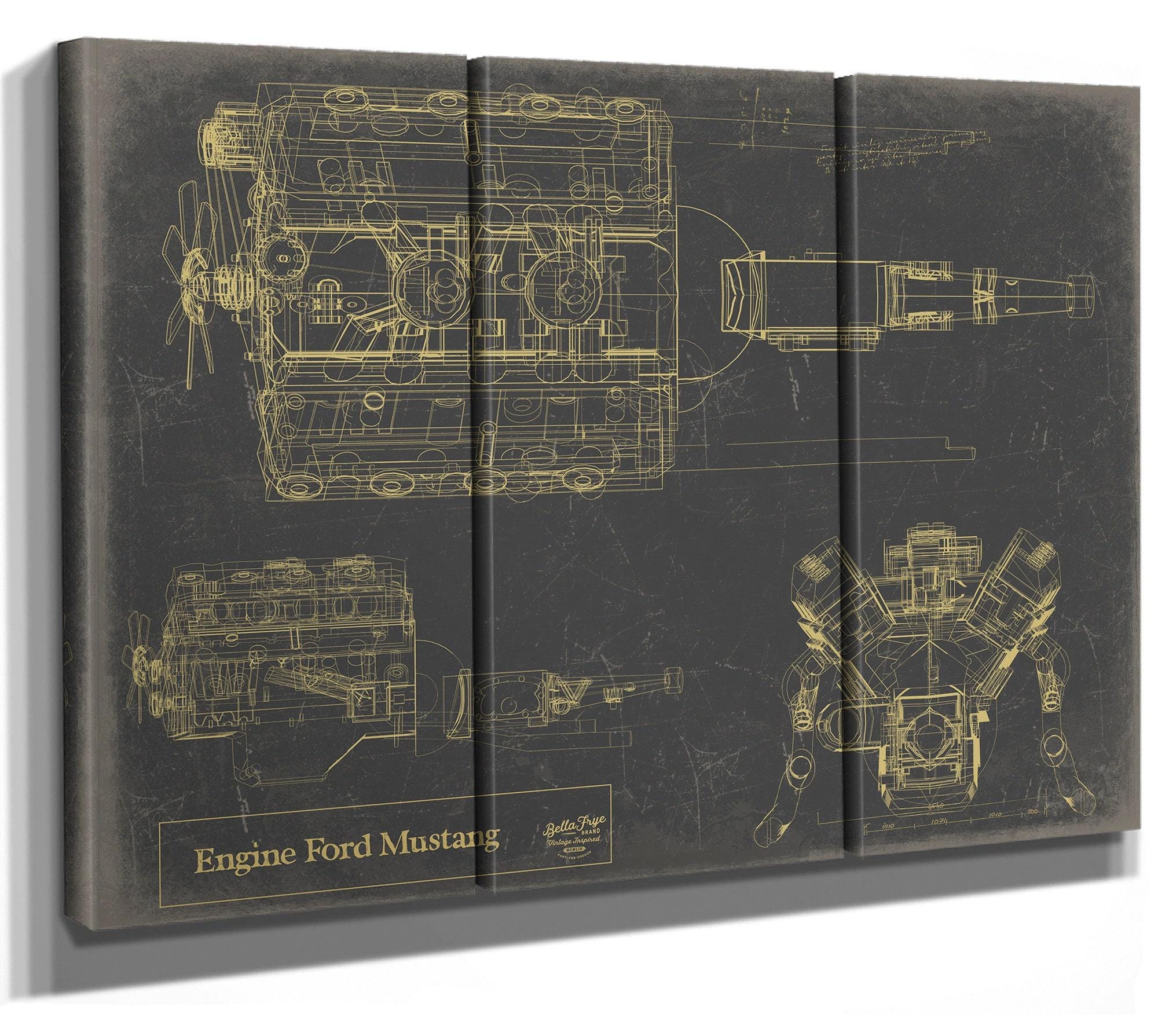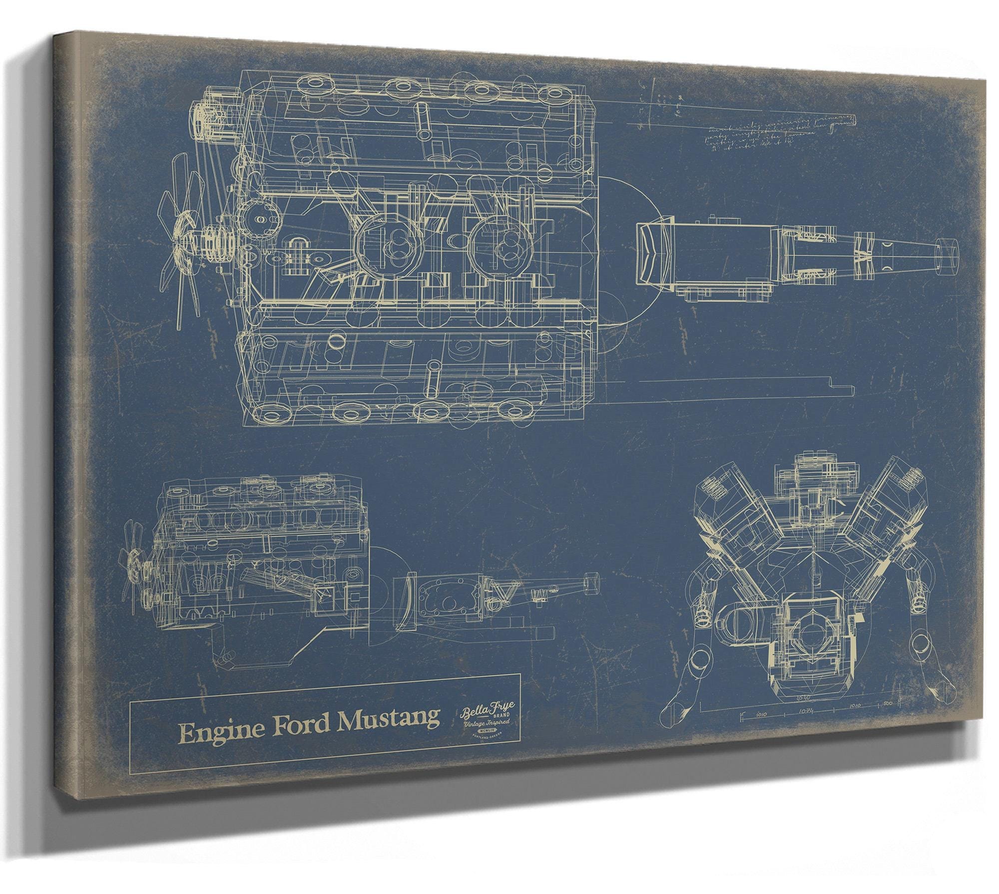 • Bella Frye Vintage Engine Ford Mustang Print,  Original Blueprint Canvas