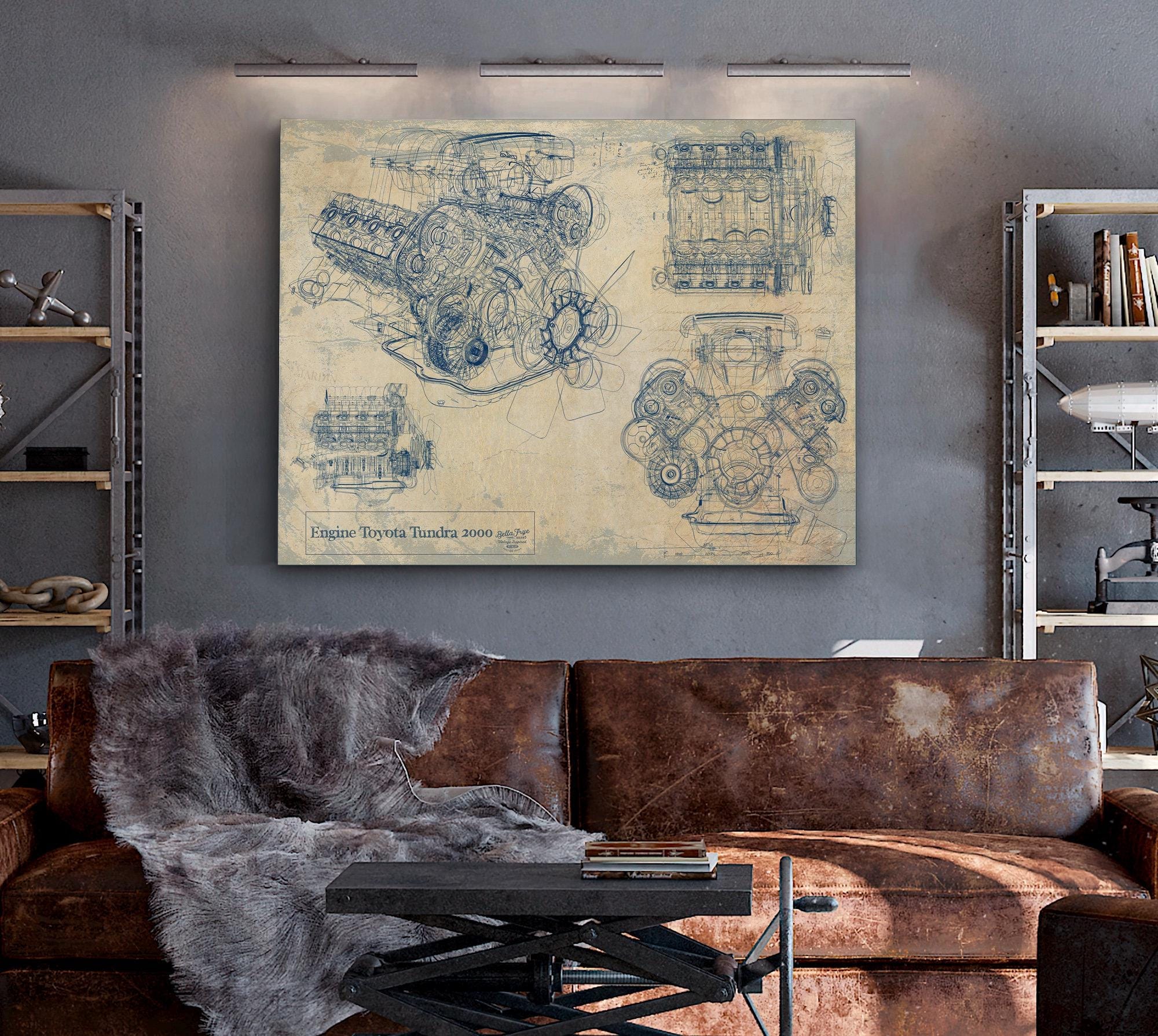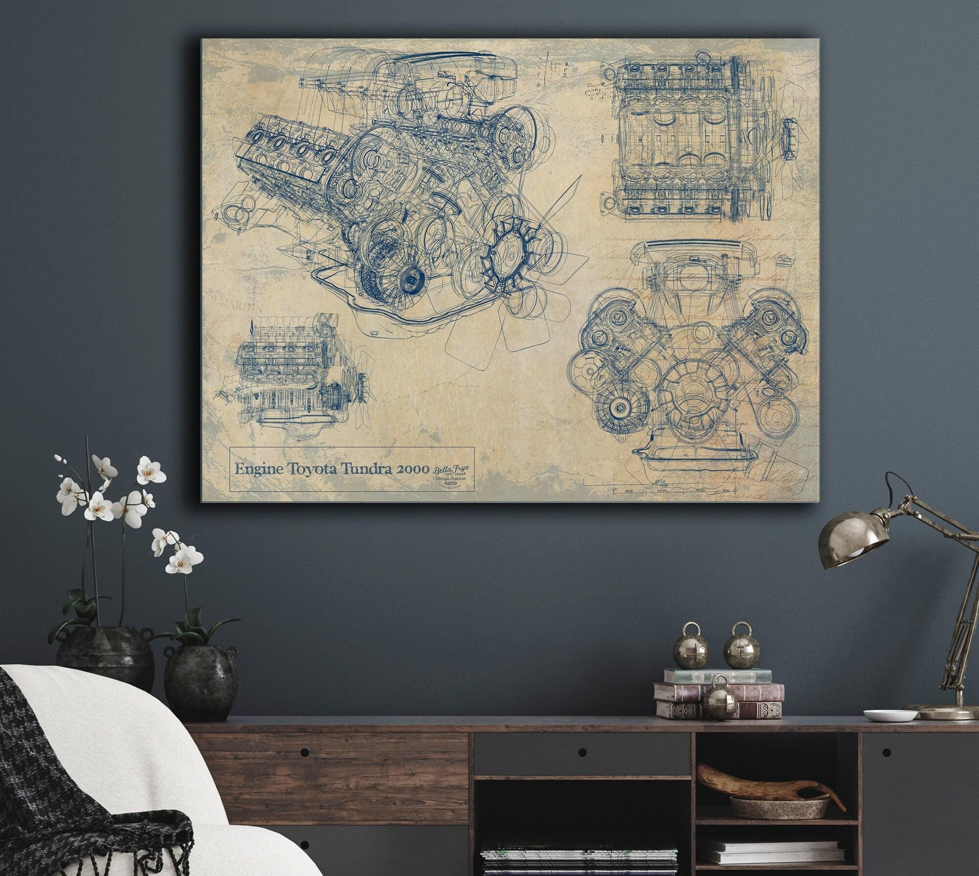 Vintage Engine Toyota Tundra 2000 Print, Original Blueprint Canvas