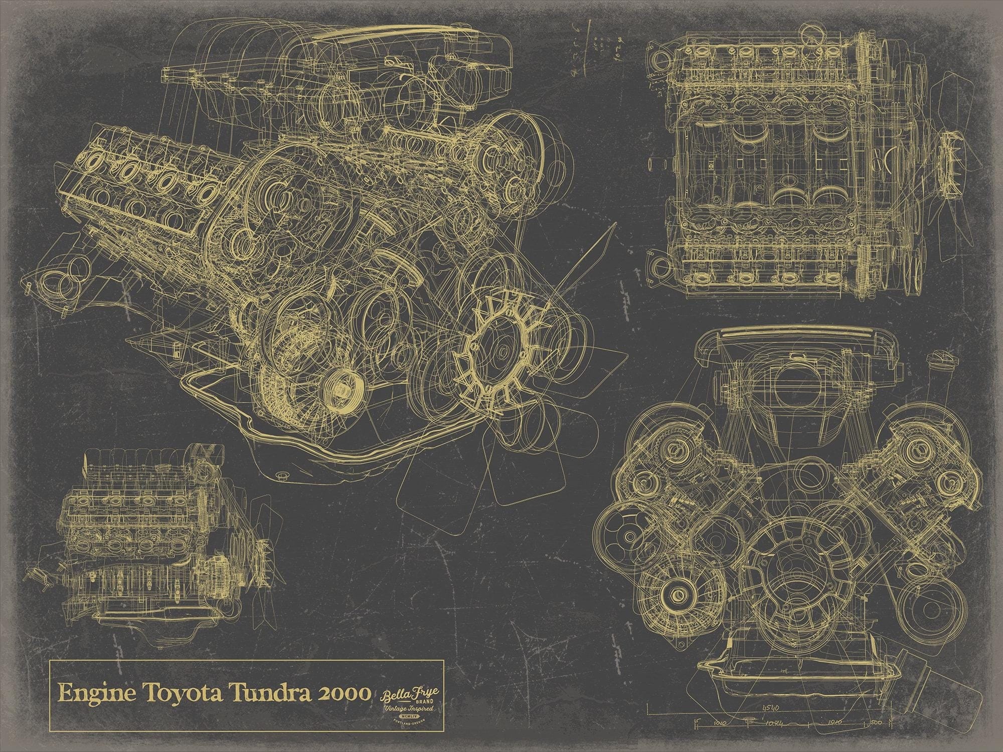 • Bella Frye Vintage Engine Toyota Tundra 2000 Print,  Original Blueprint Canvas