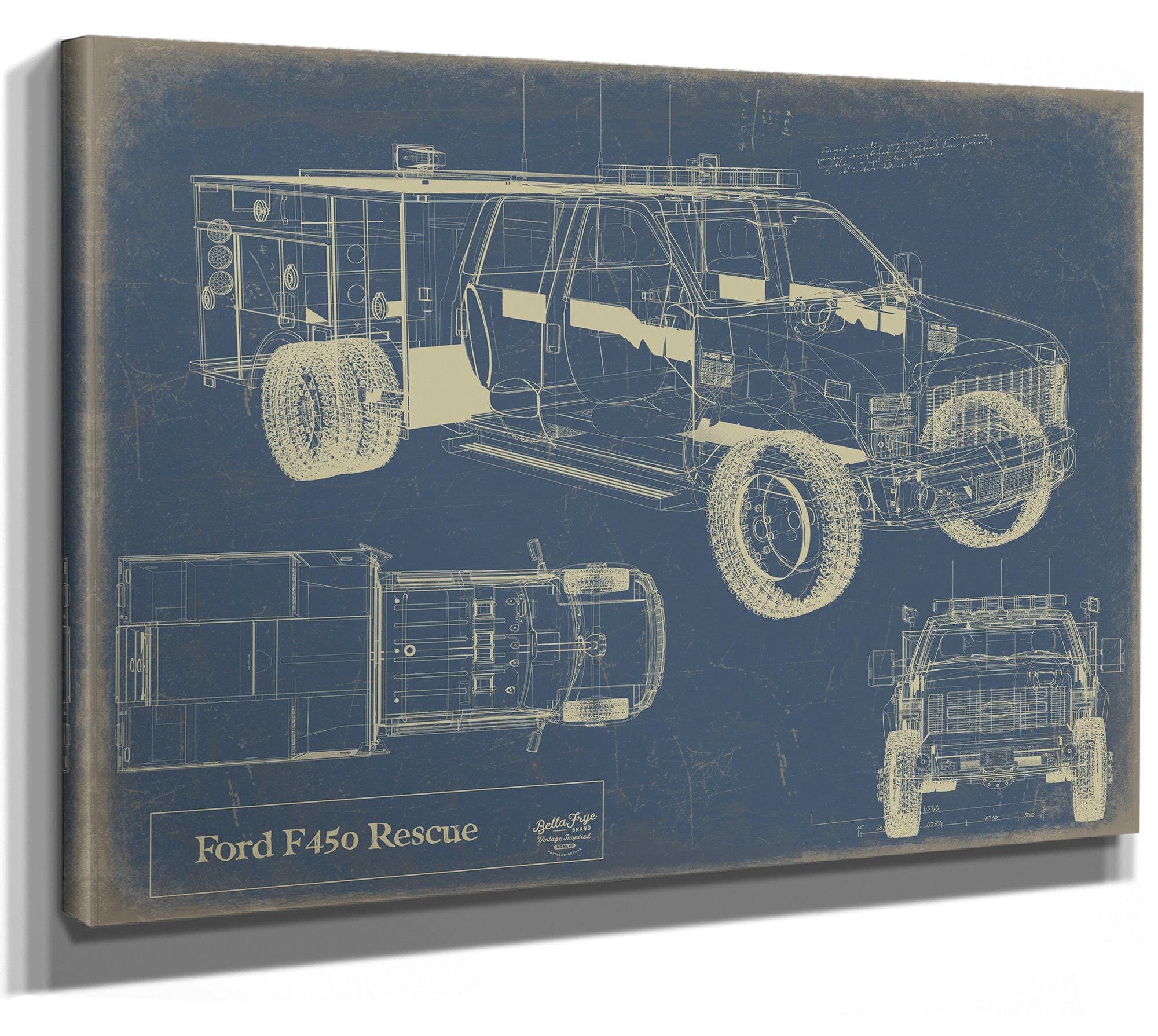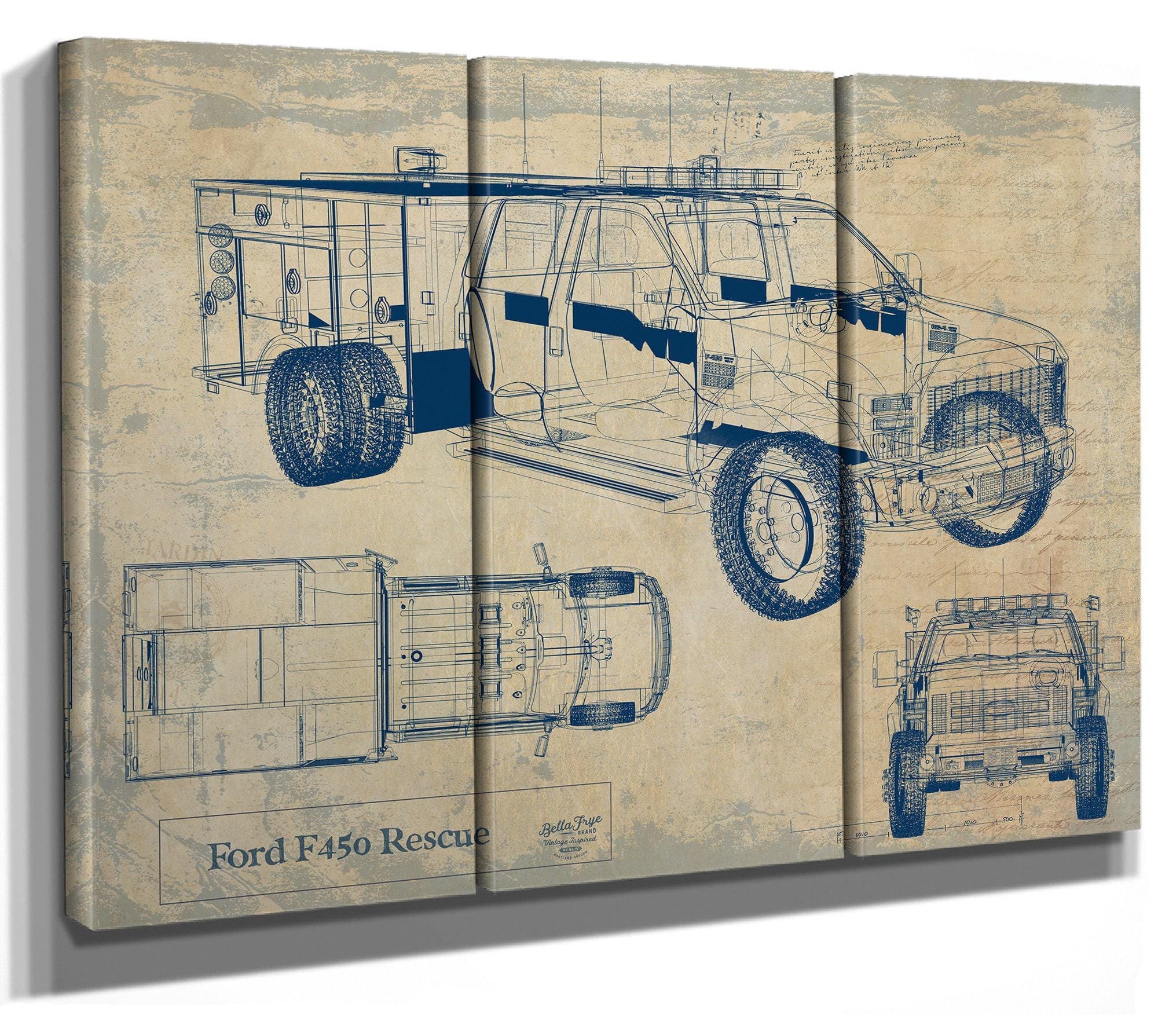 • Bella Frye Vintage Rescue Truck Model Mancave Blueprint Art