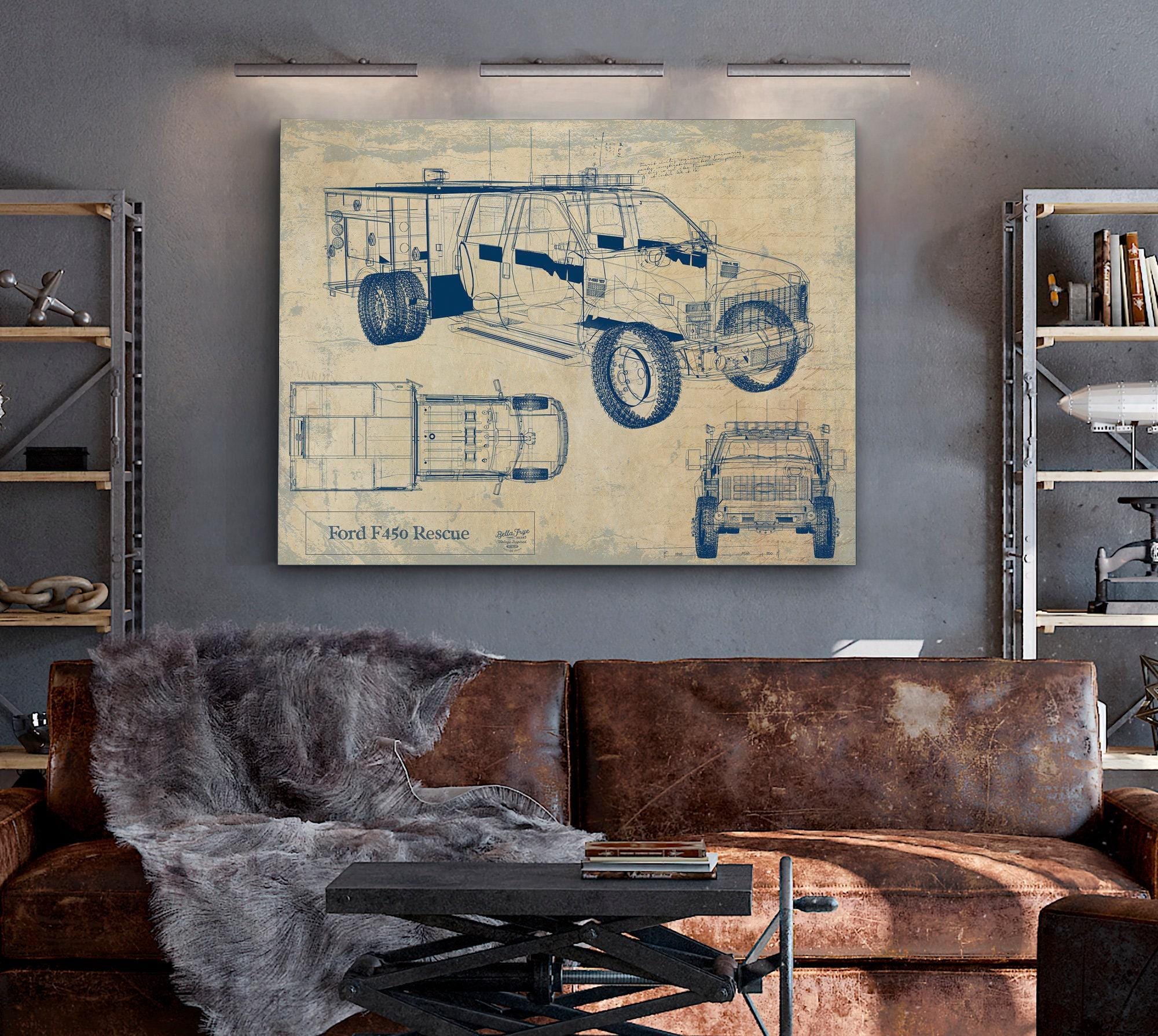 Vintage Rescue Truck Model Mancave Blueprint Art