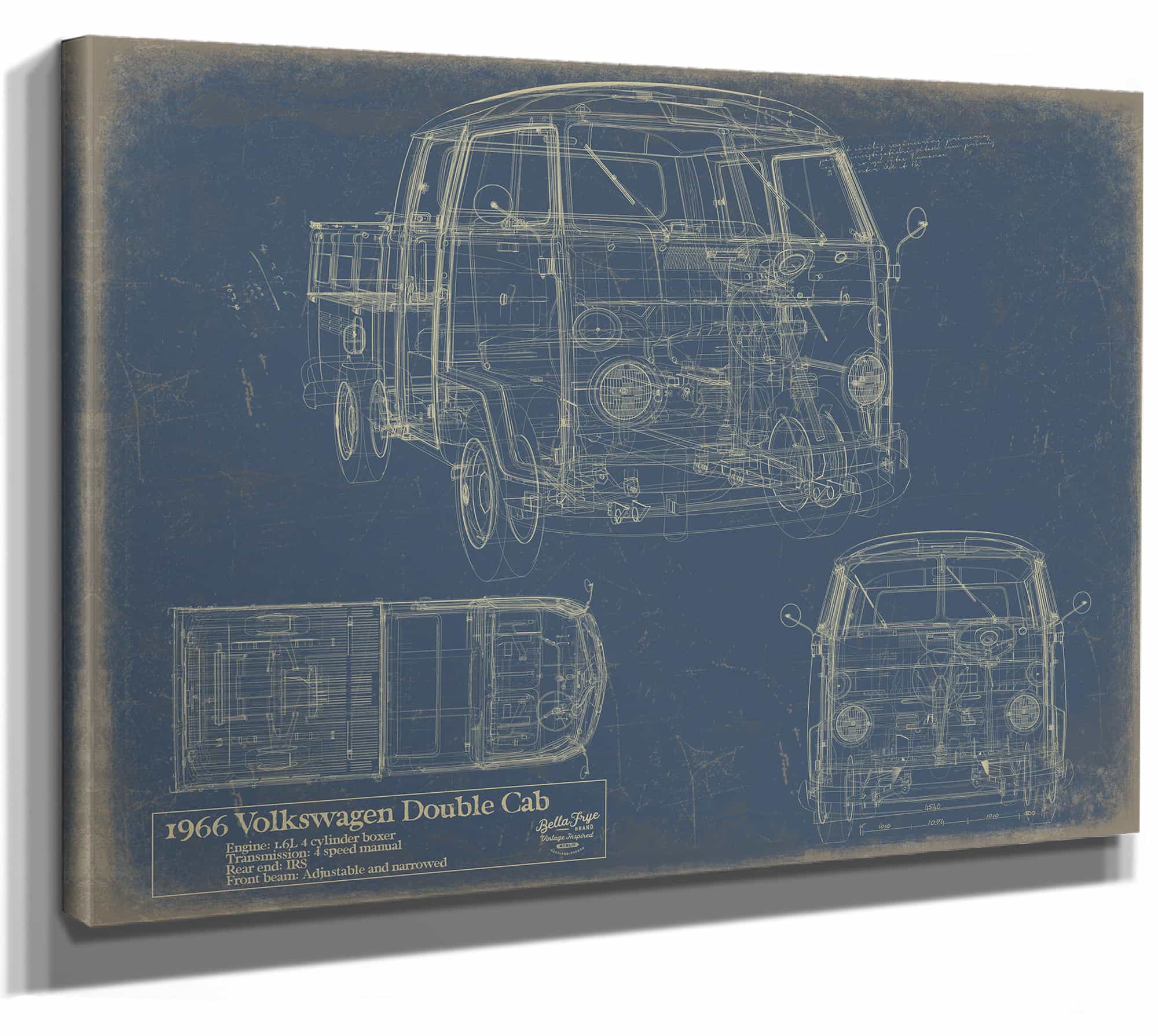 • Bella Frye Home & Garden > Decor > Artwork 24" x 18" / Stretched Canvas Wrap / Blue Volkswagen Doublecab 1966 Fbm  Original Artwork