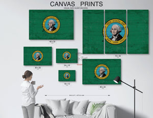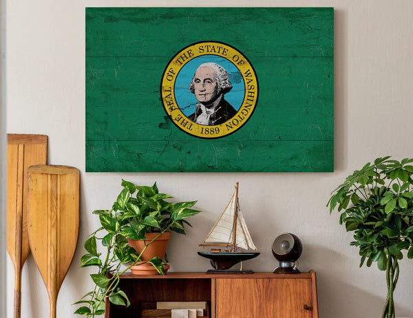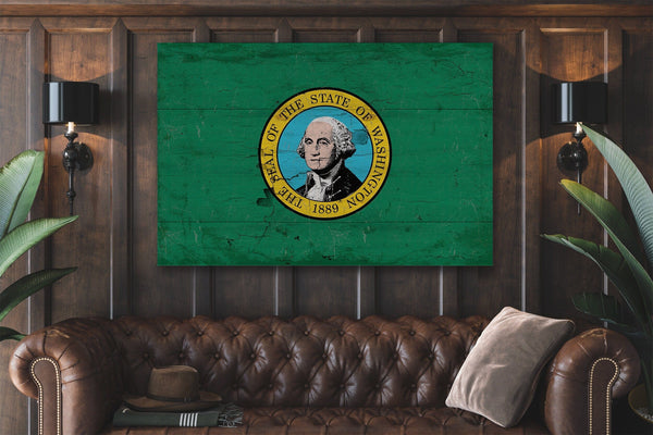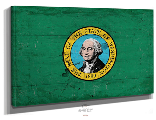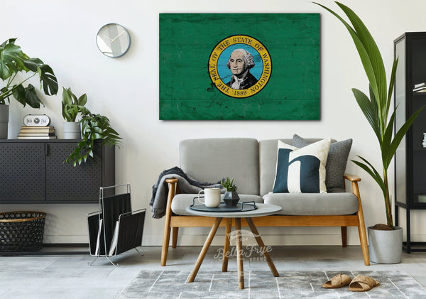 • Bella Frye Home & Garden > Decor > Artwork 24" x 18" / Stretched Canvas Wrap Washington Flag Wall Art - Vintage State of Washington Sign