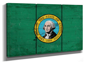 • Bella Frye Home & Garden > Decor > Artwork 60" x 40" / 3 Panel Canvas Wrap Washington Flag Wall Art - Vintage State of Washington Sign